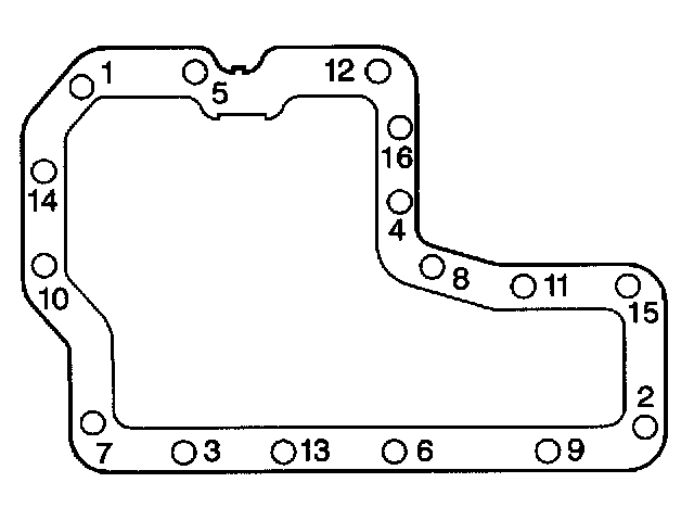 Tighten the pan bolts 3 time to the proper specification, in the sequence shown.