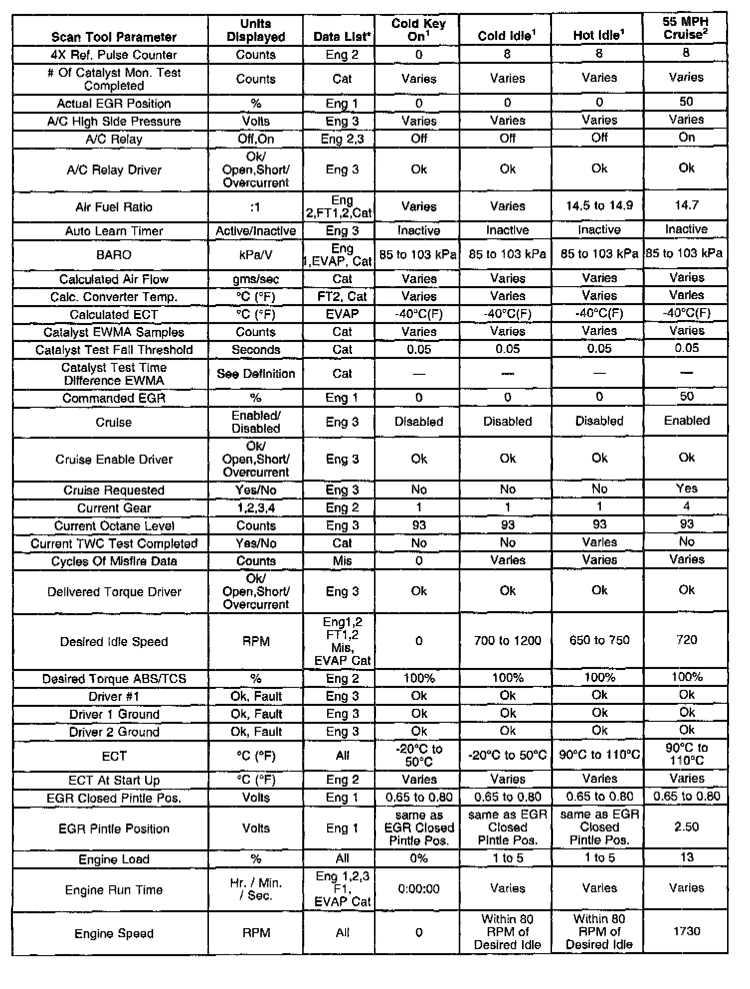 The Engine Scan Tool Data List contains all engine related parameters that are available on the scan tool. The list is arranged in alphabetical order. A given parameter may appear in any one of the data lists, and in some cases may appear more than once, or in more than one data list in order to group certain related parameters together.