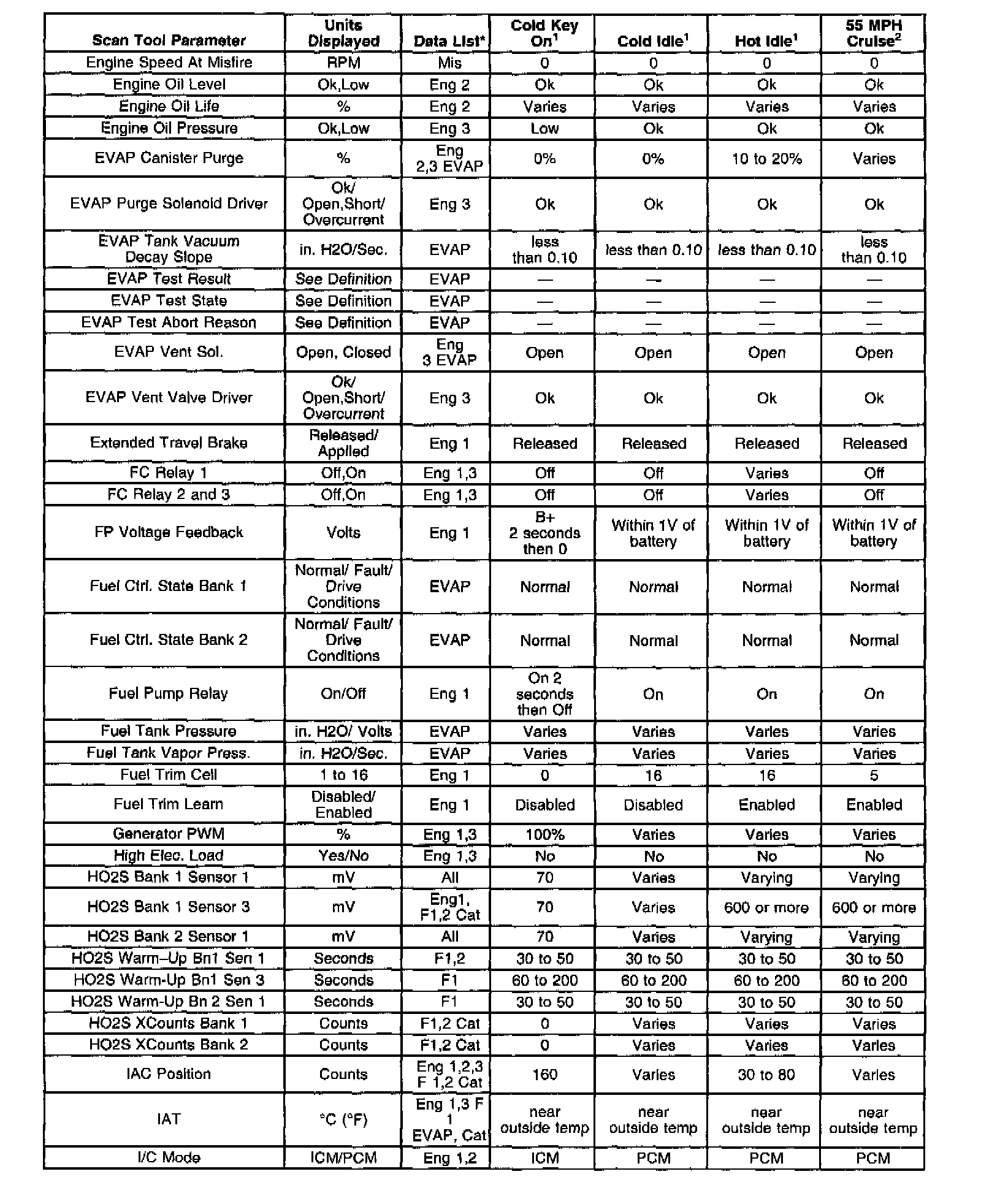 Scan tool values from a properly running engine may be used for comparison with the engine you are diagnosing. The Engine Scan Tool Data List represents values that would be seen on a normally running engine.