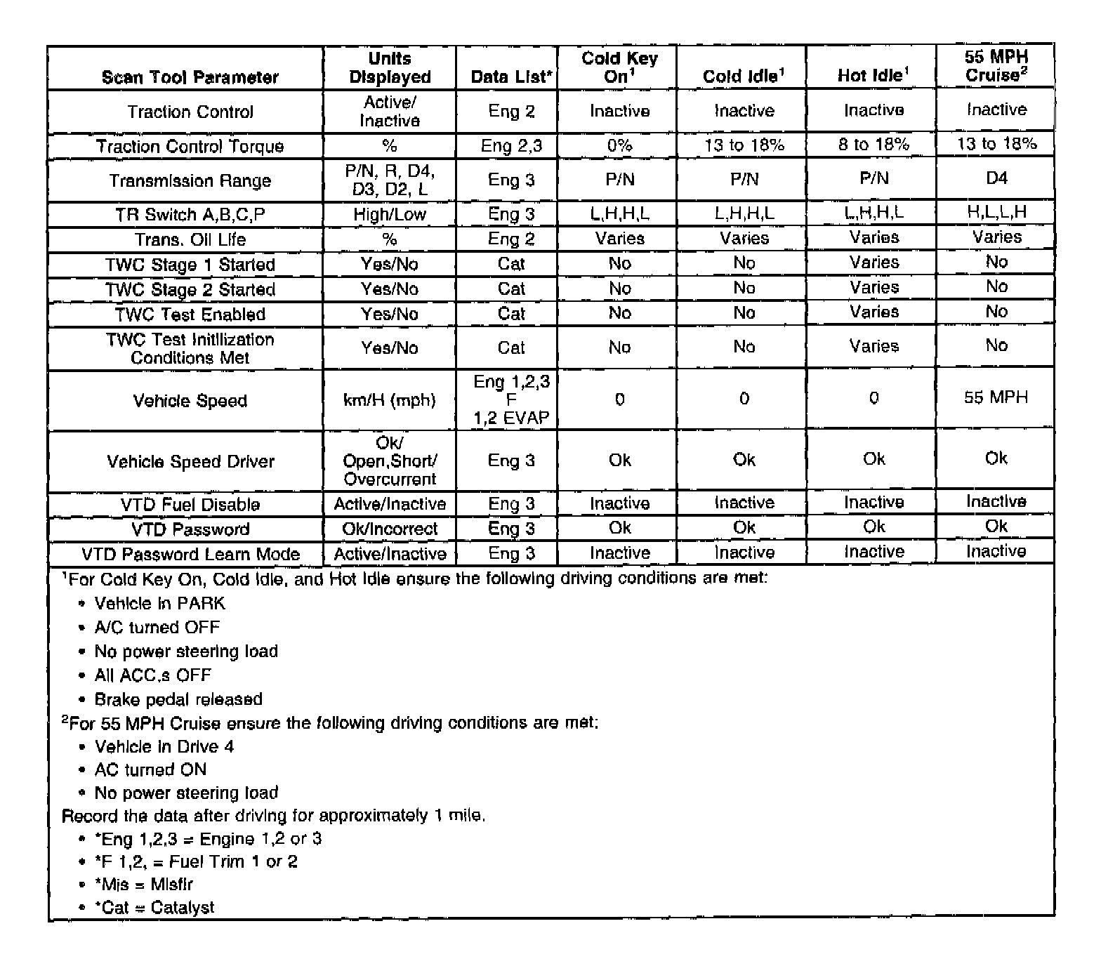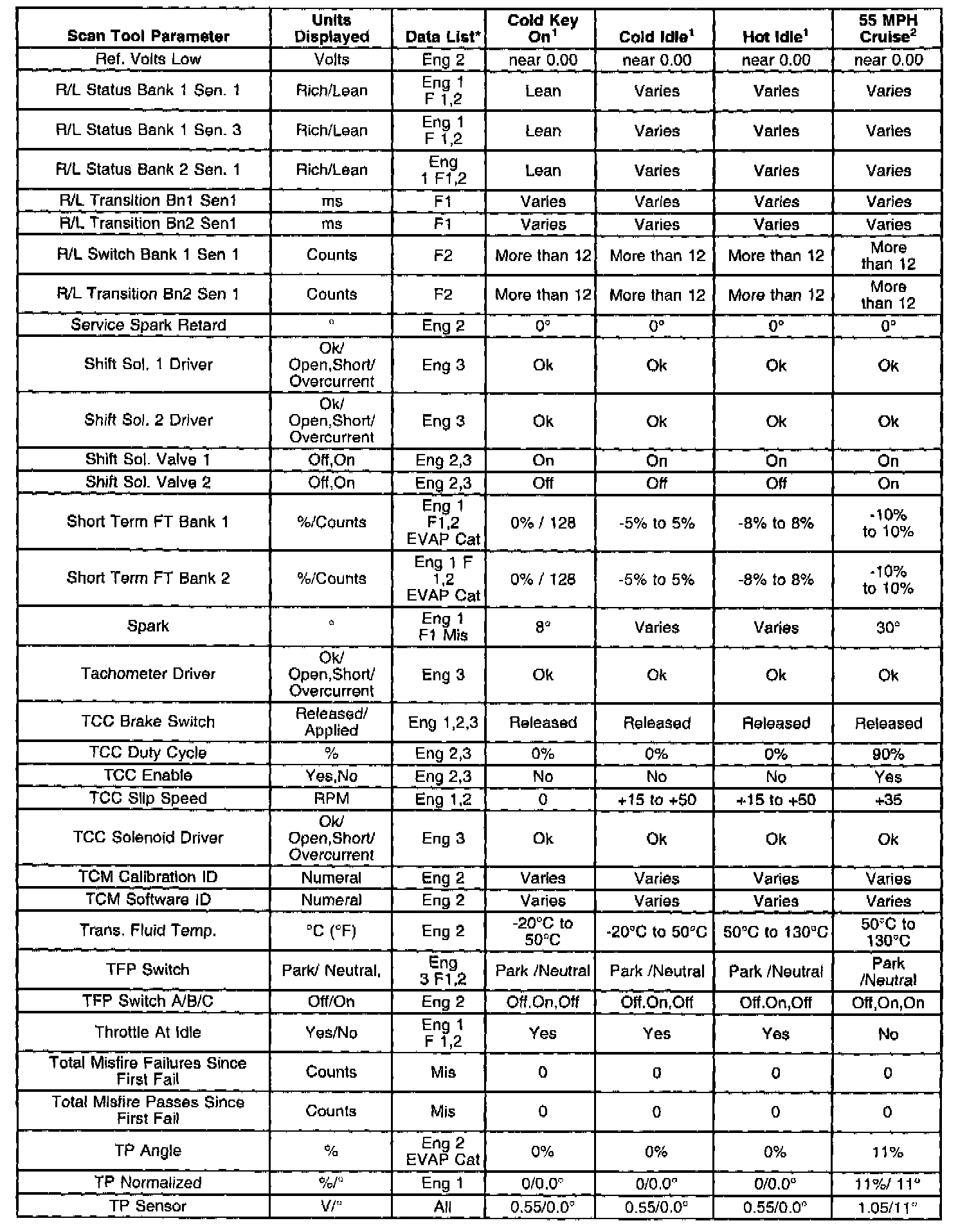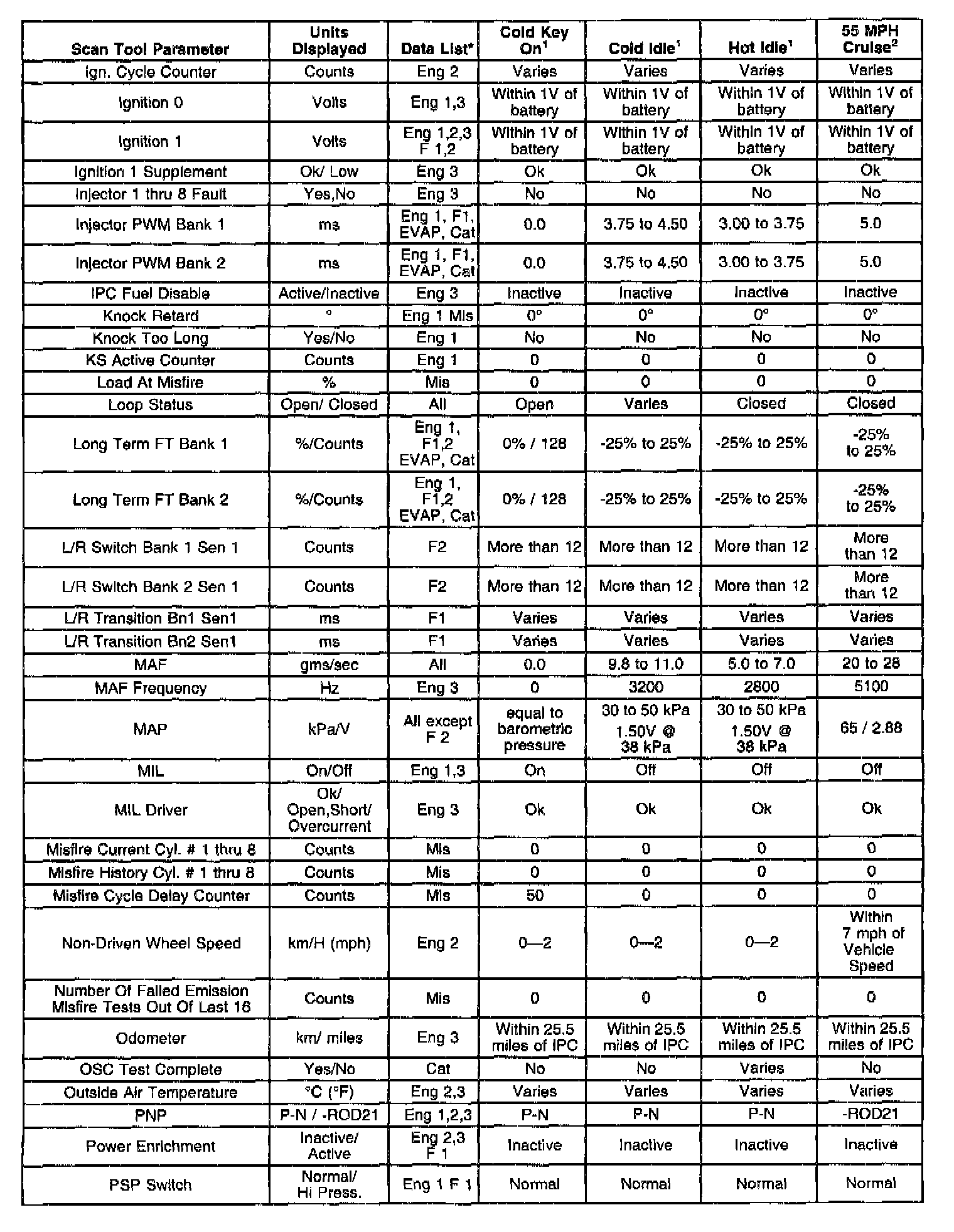 Only the parameters listed below are referenced in this service manual for use in diagnosis. Refer to Symptoms for diagnosis if all values fall within the typical range described in the table.