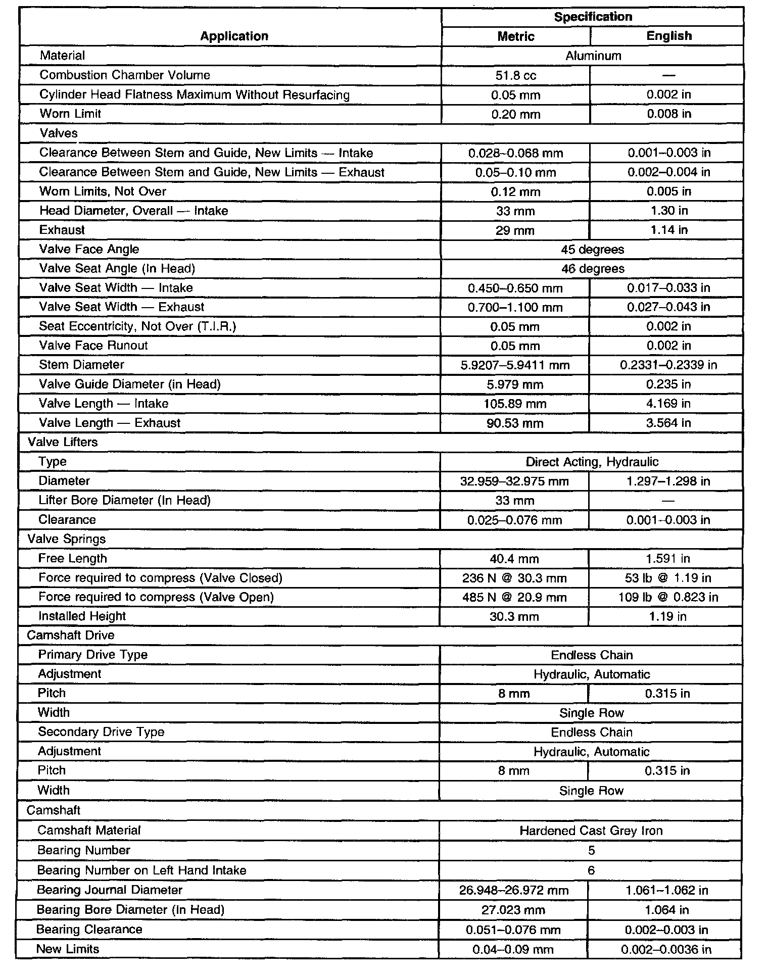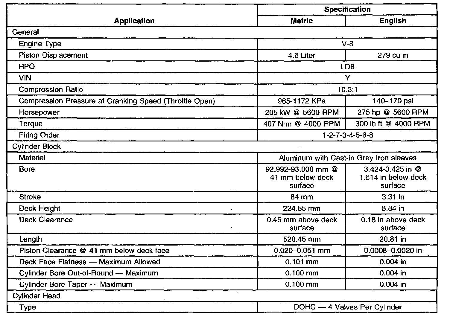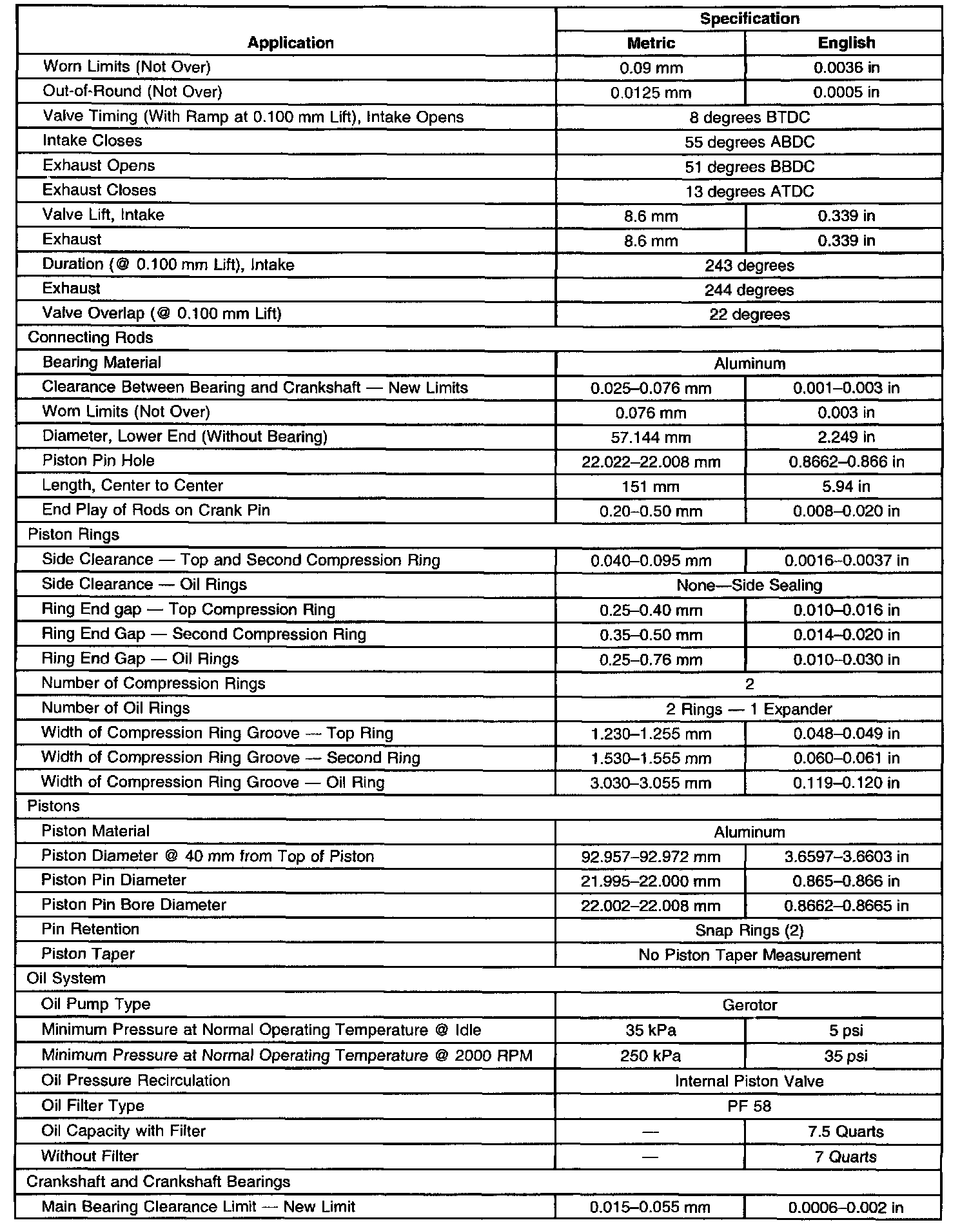 Engine Mechanical Specifications