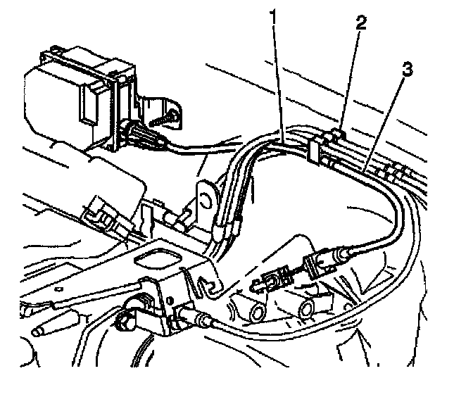 2. Remove the cruise control cable (1) from the cruise control module connector (3).