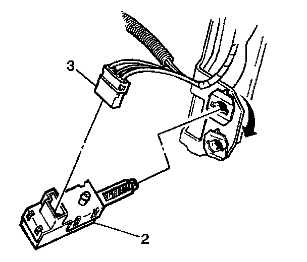 1. Insert the release switch (2) into the retainer until fully seated against the brake pedal arm.
