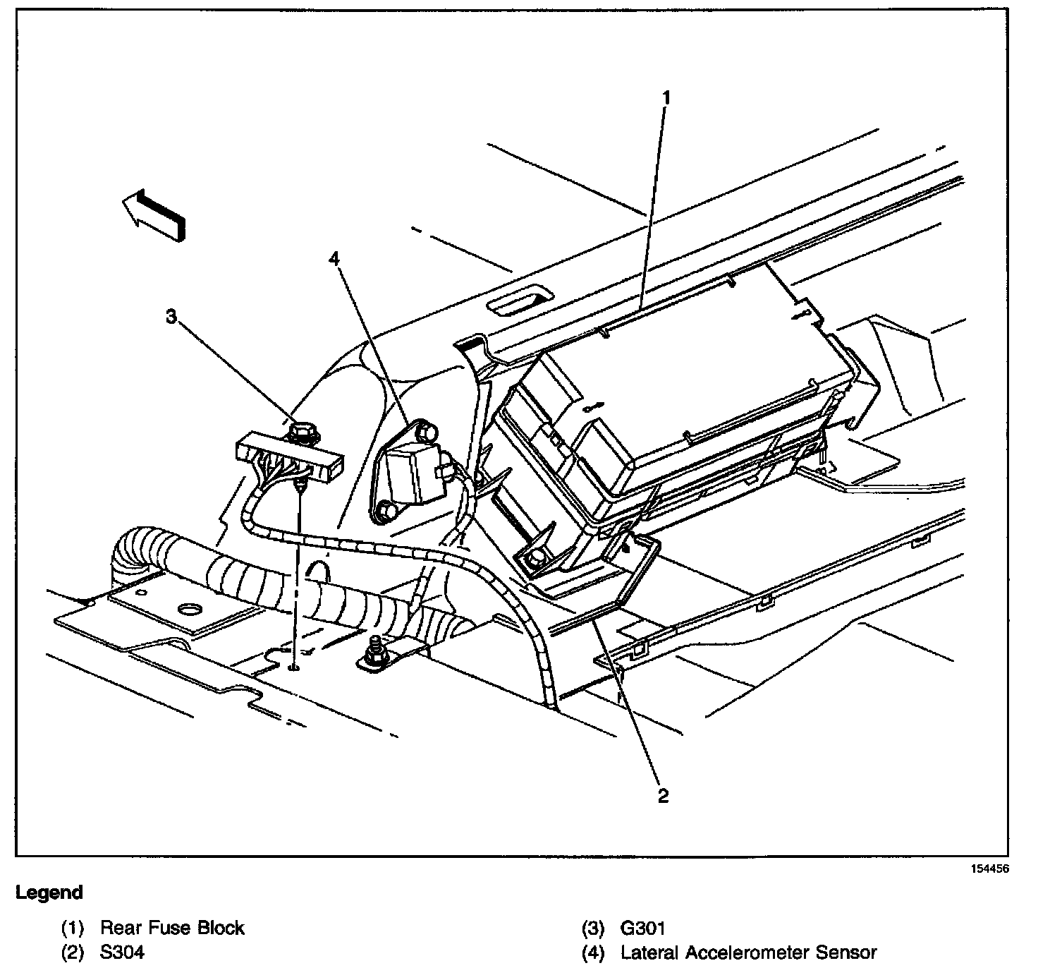 Left rear of the passenger compartment, under the rear seat near the rear fuse block