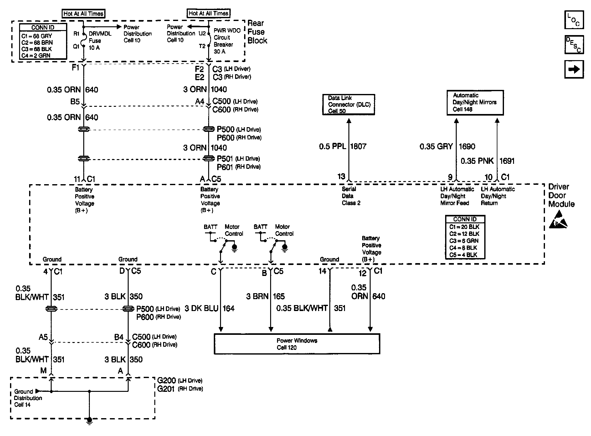 Door Control Module Schematics: Driver Door Module Inputs And Outputs: