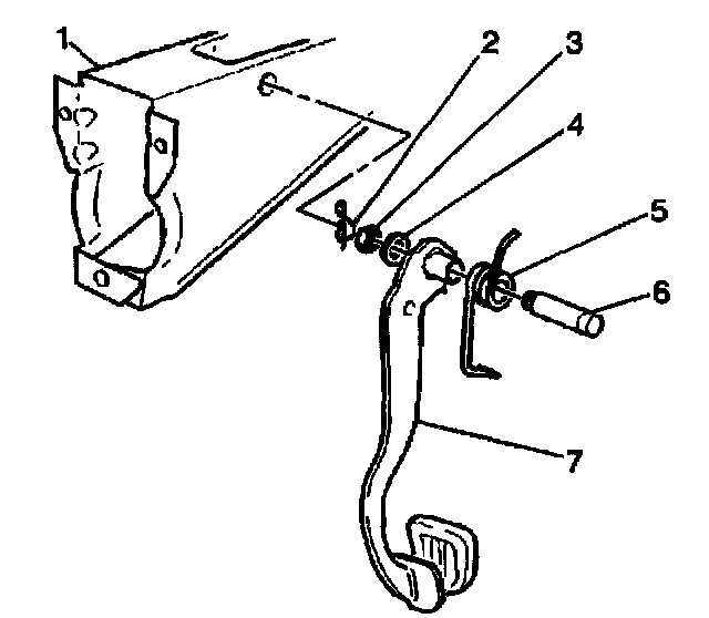 Removal Procedure1. Remove the brake pedal bracket assembly. Refer to Brake Pedal Bracket Replacement.