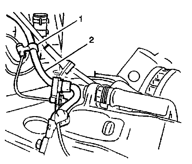 3. Remove the brake lining sensor clip (1) from the front brake hose (2).