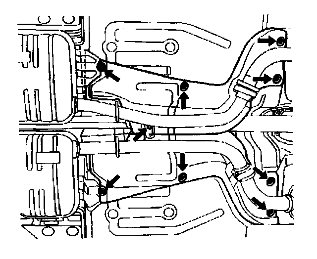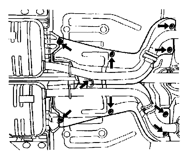 8. Slide the propeller shaft between the exhaust and the underbody in order to remove without removing the exhaust system.