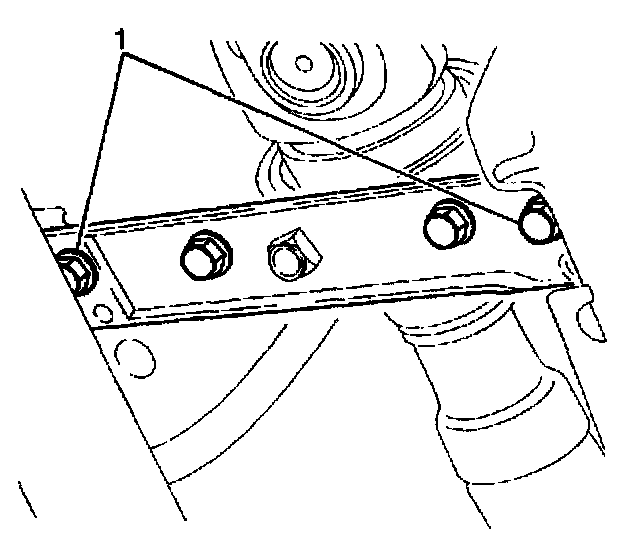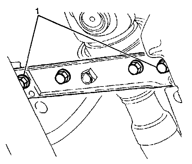 4. Install the propeller shaft center bearing bracket bolts (1) through the bracket and into the body.