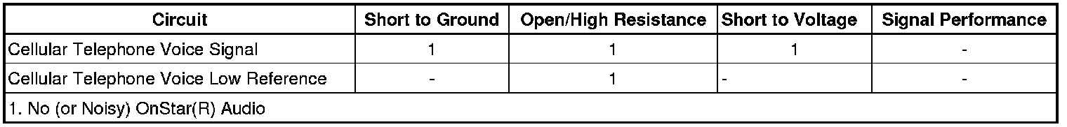 When an OnStar(R) keypress is made, a serial data message is sent to the audio system to mute all radio functions and transmit OnStar(R) originated audio. After the audio system is muted, the OnStar(R) signals are transmitted to the audio system on the cellular telephone voice signal circuit, and returned to the module on the cellular telephone voice low reference circuit. The cellular modem connects the OnStar(R) system to the cellular carriers communication system by interacting with the national cellular infrastructure. The module sends and receives all cellular communications over the cellular/navigation antenna and cellular antenna coax.