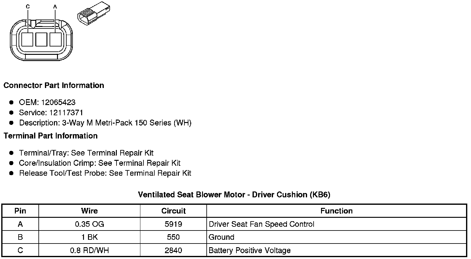 Ventilated Seat Blower Motor - Driver Back (KB6)