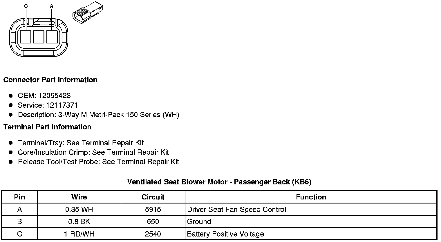 Ventilated Seat Blower Motor - Passenger Back (KB6)