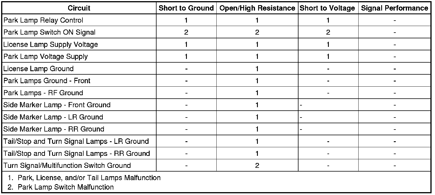If the readings do not change between the commanded states, refer to Park Lamp Switch Malfunction.
