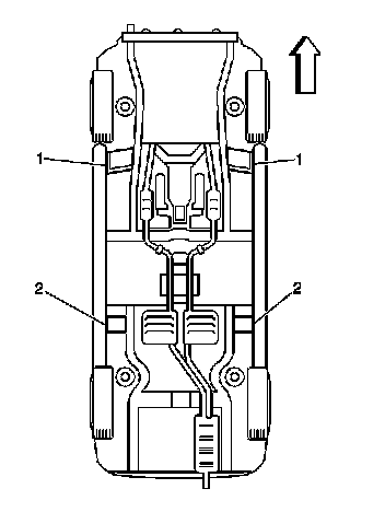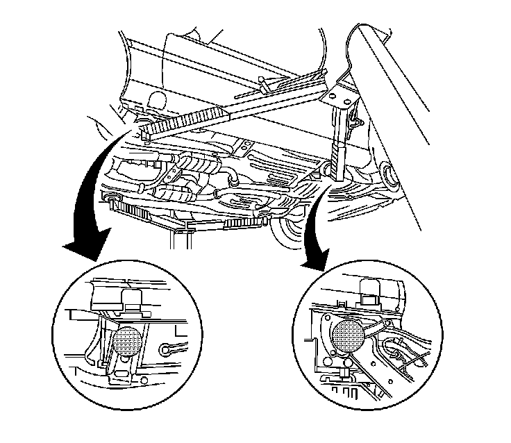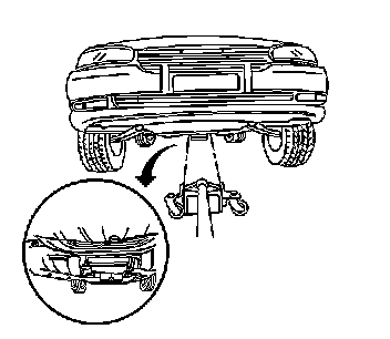 Caution: To avoid any vehicle damage, serious personal injury or death when major components are removed from the vehicle and the vehicle is supported by a hoist, support the vehicle with jack stands at the opposite end from which the components are being removed and strap the vehicle to the hoist.
