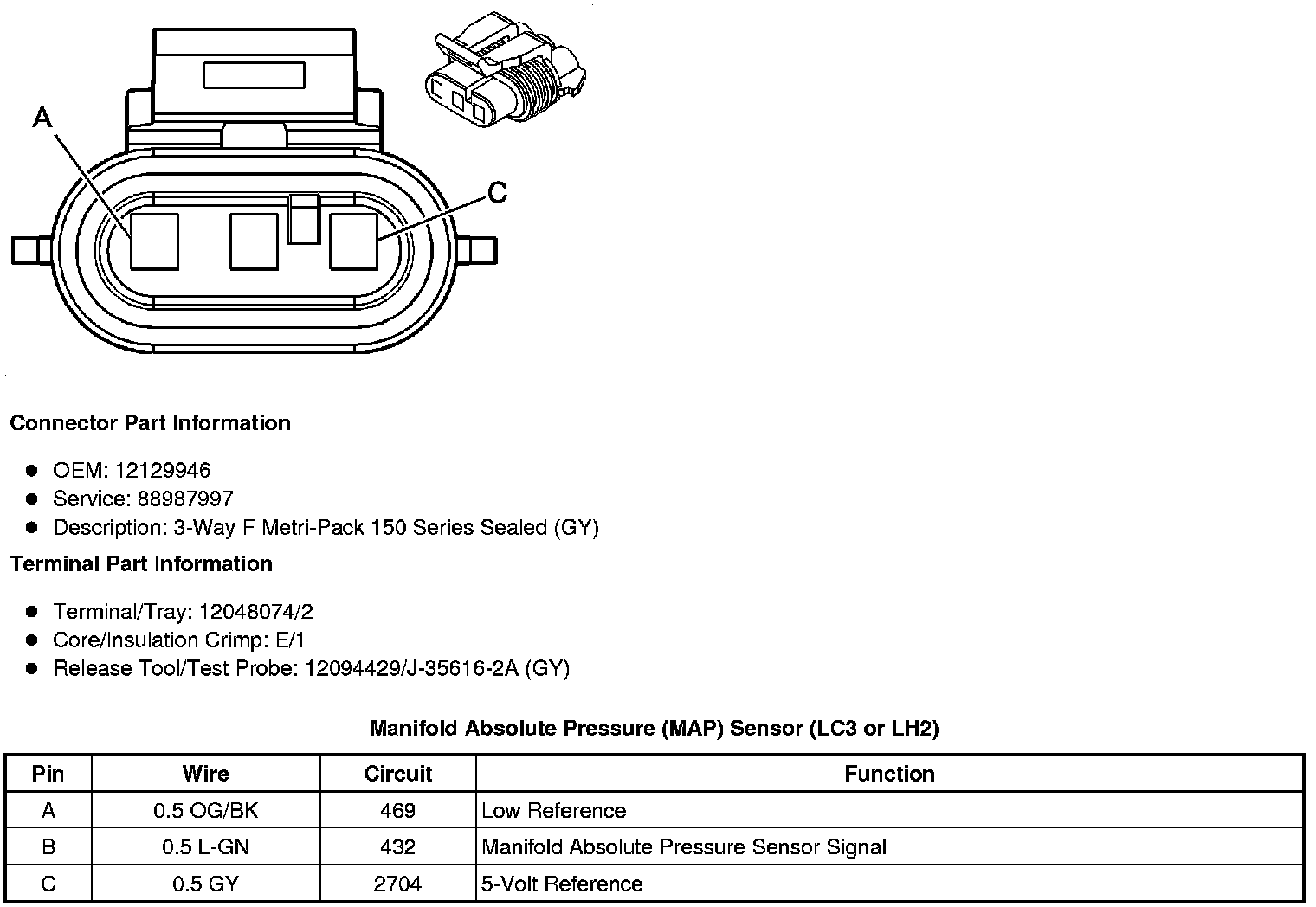 Manifold Absolute Pressure (MAP) Sensor (LC3 or LH2)