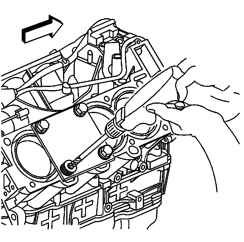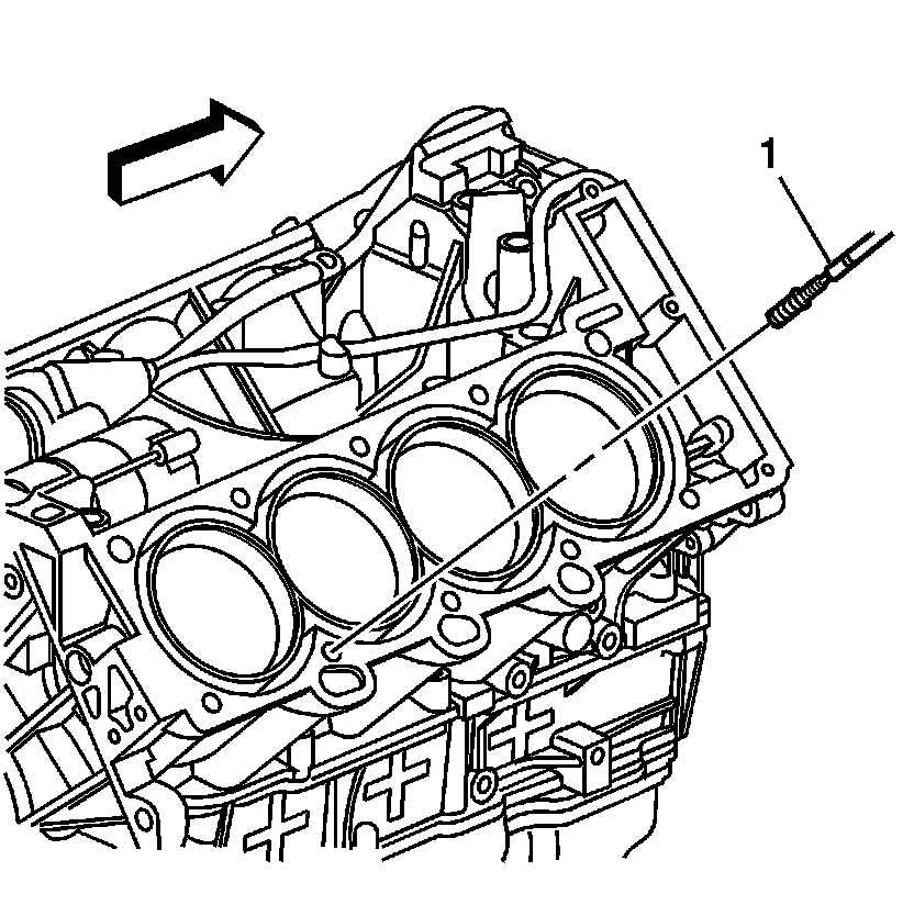 3. Position the alignment pin (1) through the bushing and into the cylinder head bolt hole.