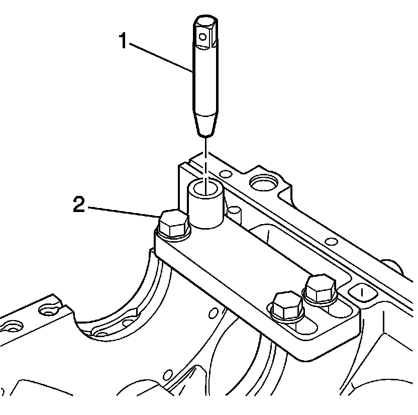 3. Position the alignment pin (1) through the bushing and into the crankshaft main cap bolt hole.