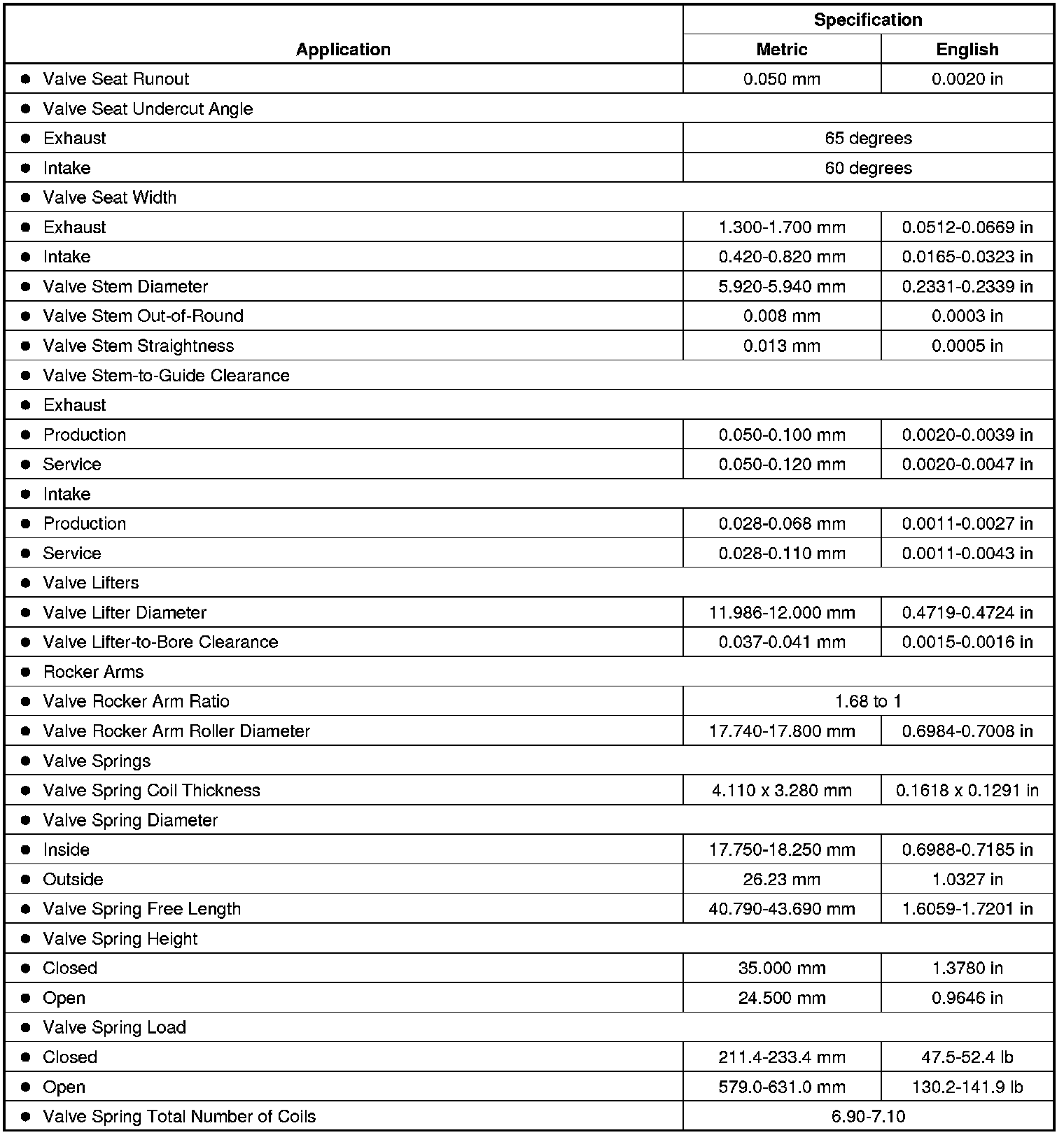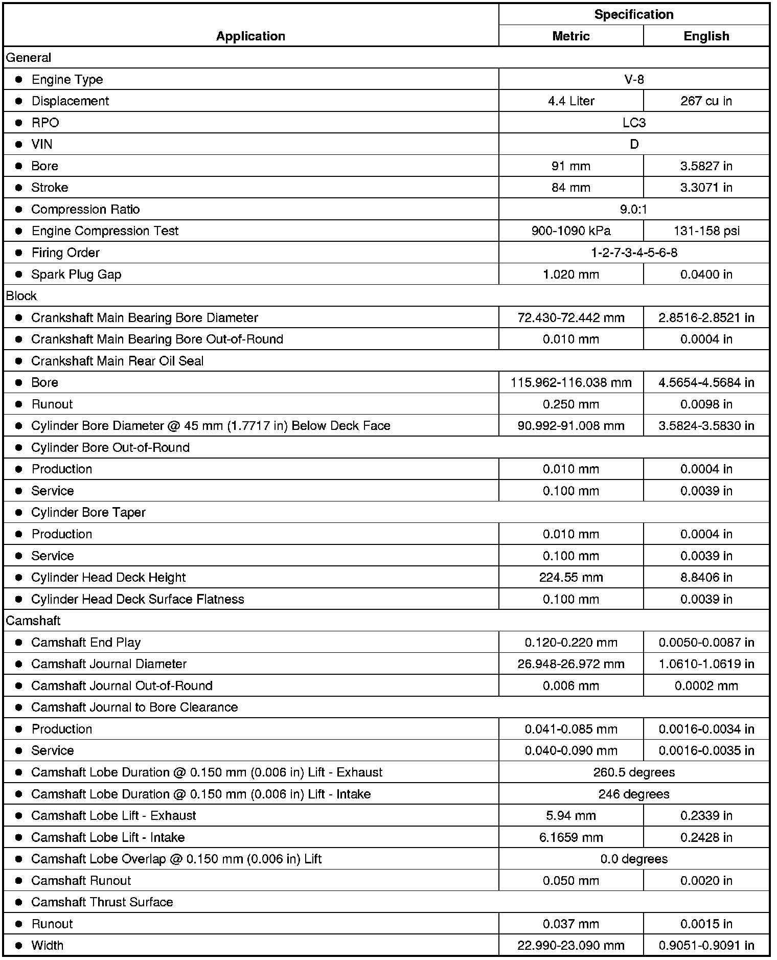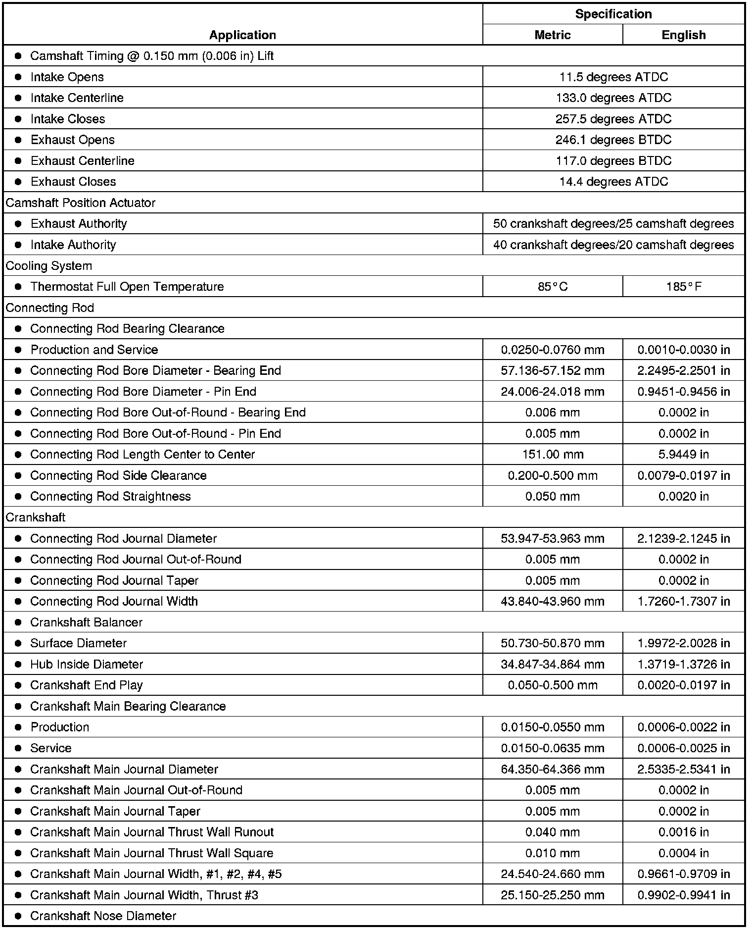 Engine Mechanical Specifications