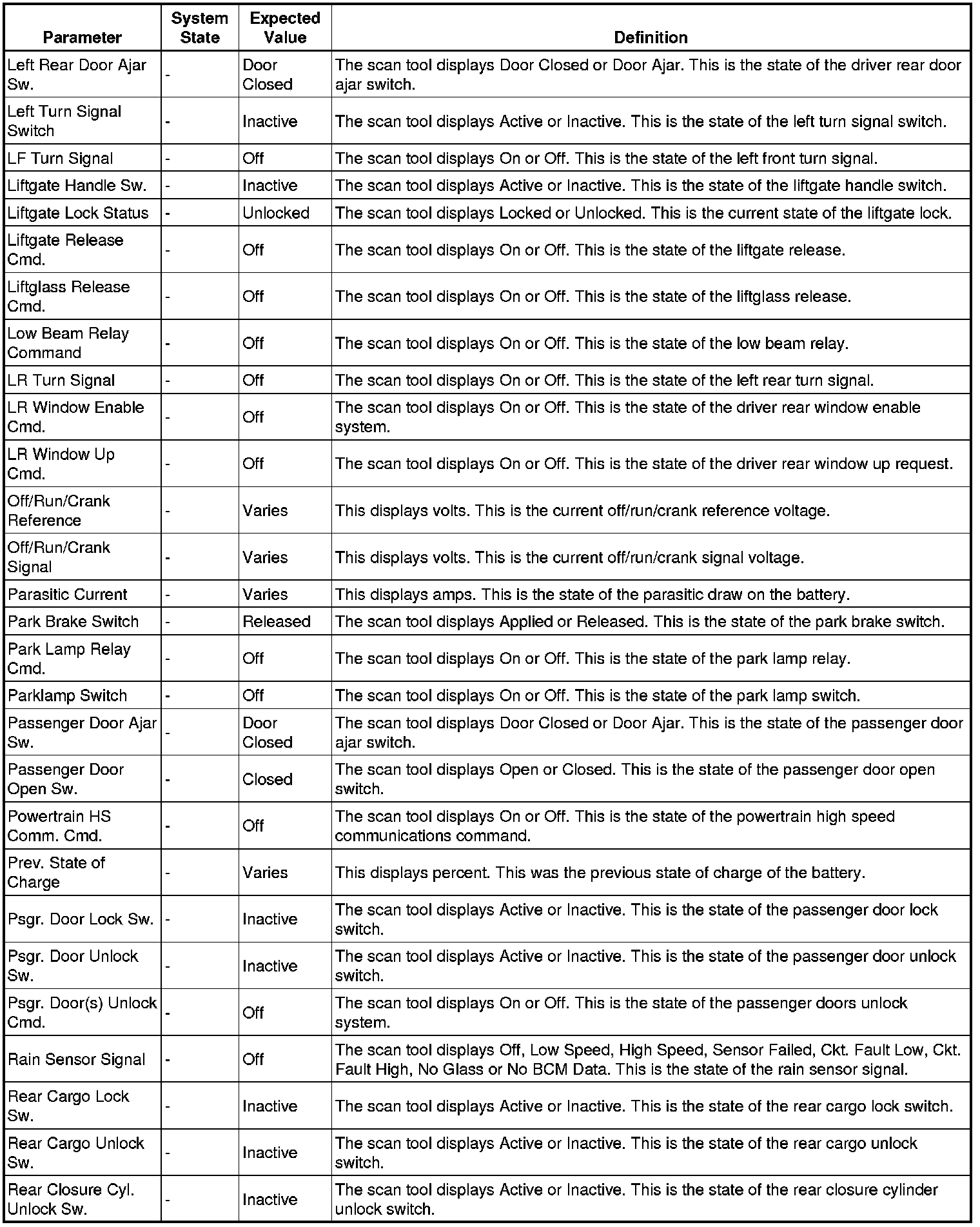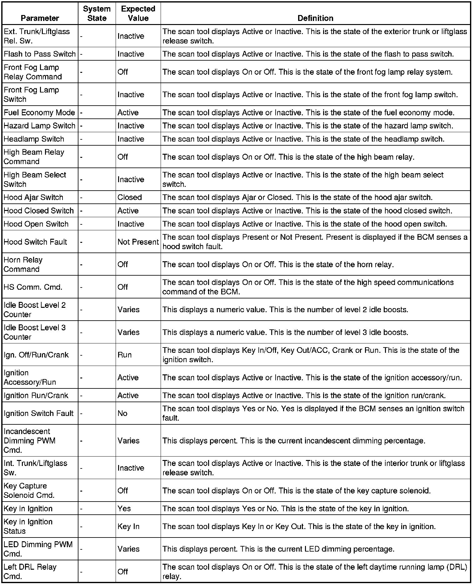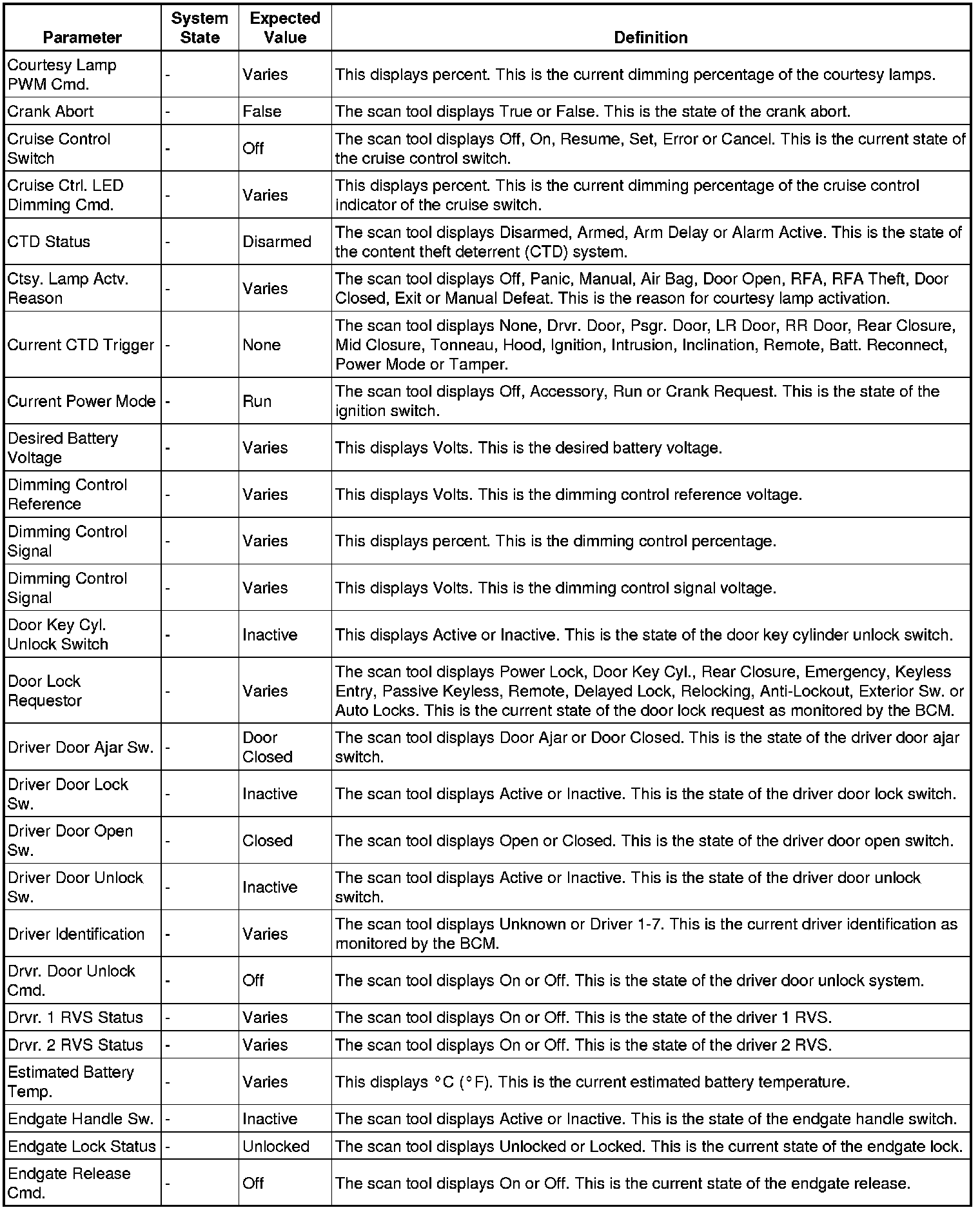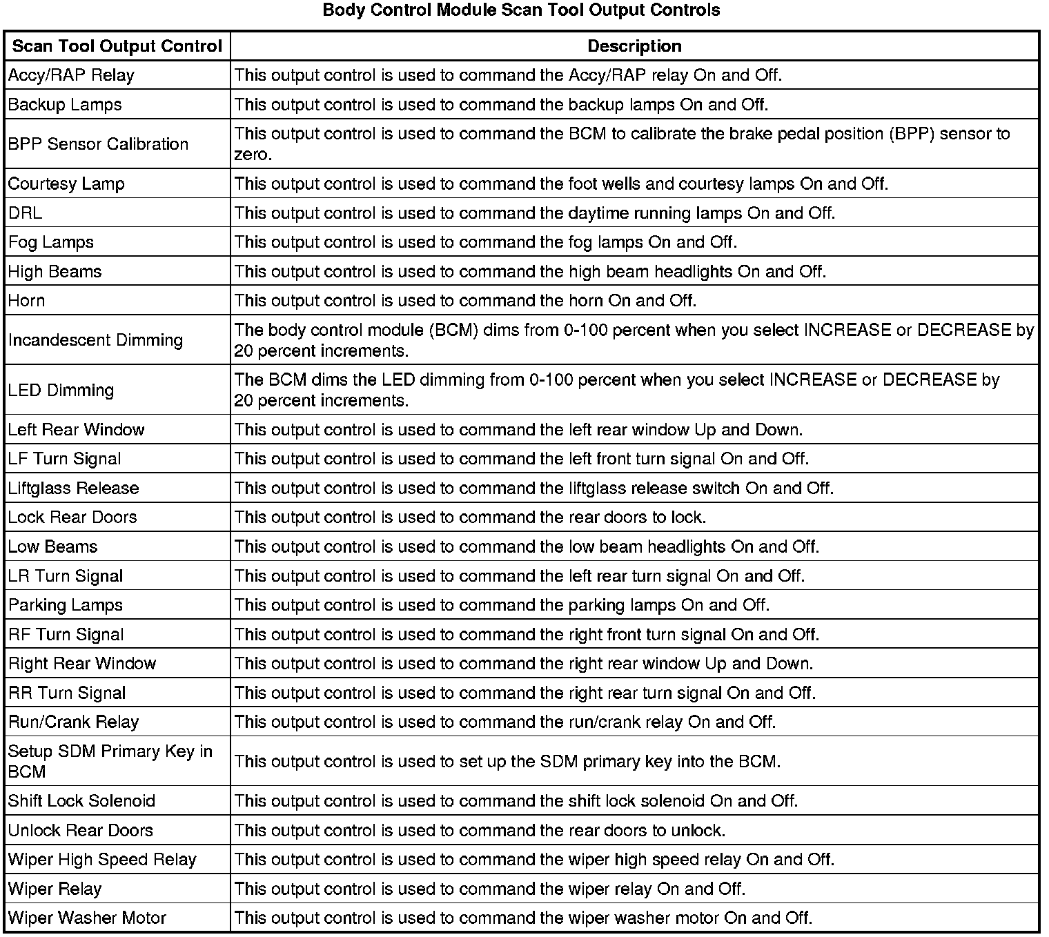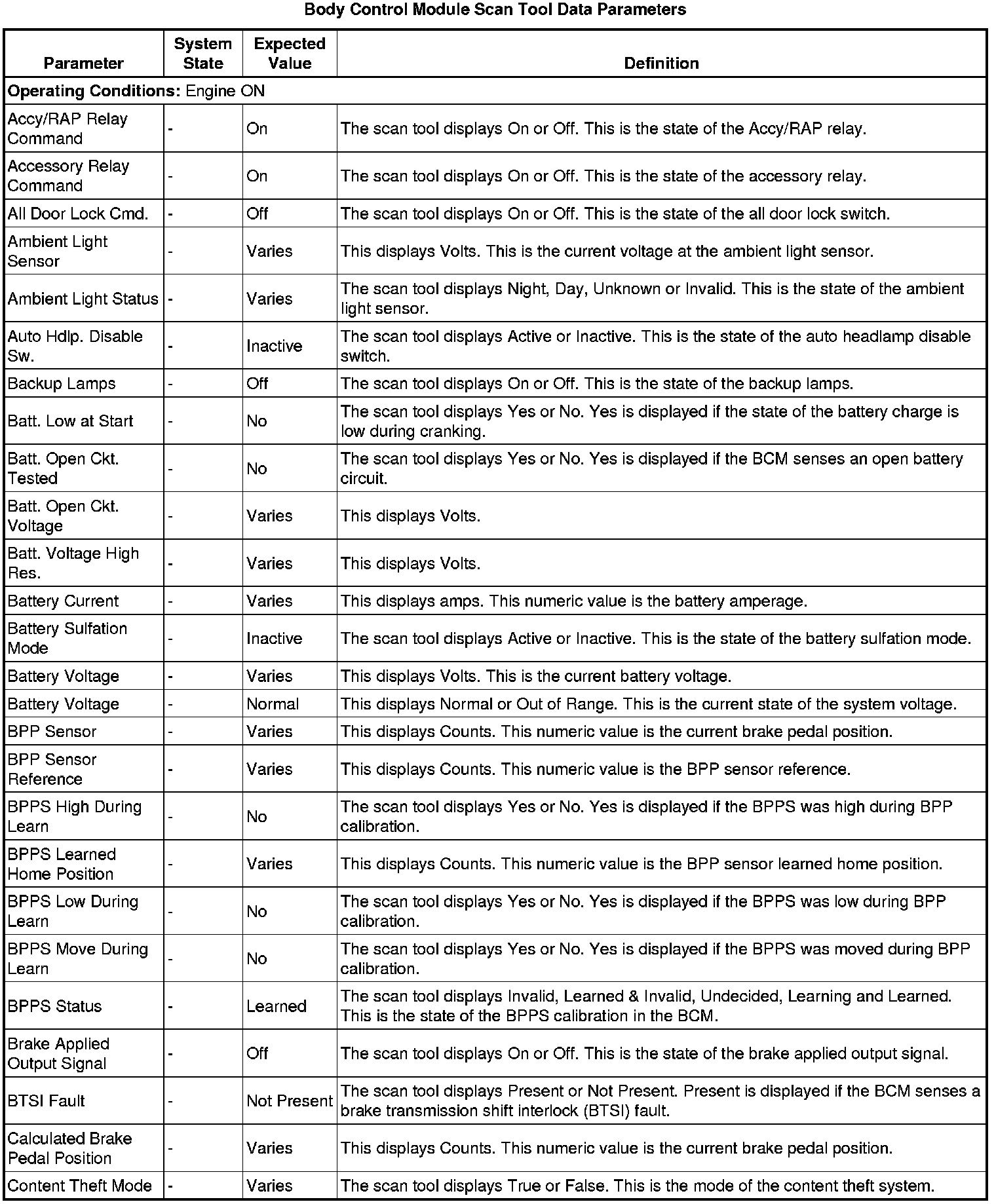 Body Control Module Scan Tool Information