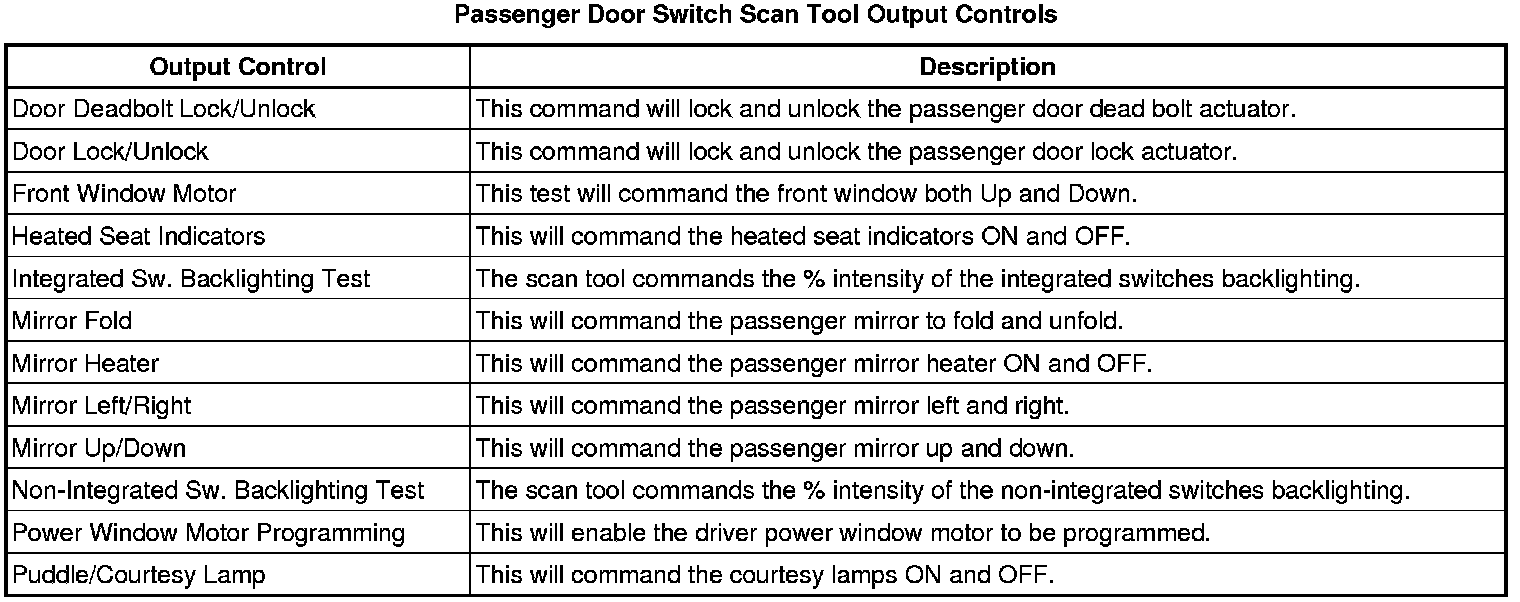 Door Lock Control Module Scan Tool Information (Passenger Door Switch)
