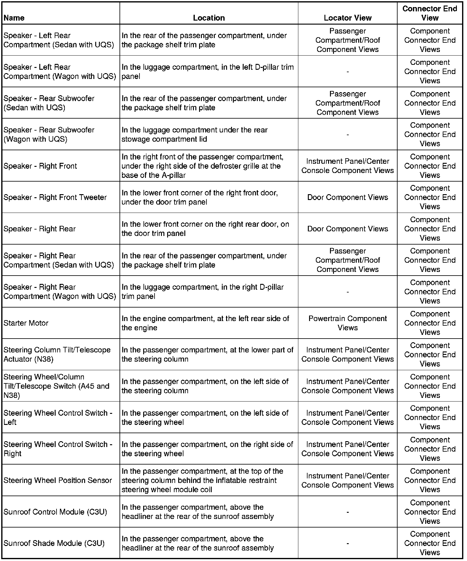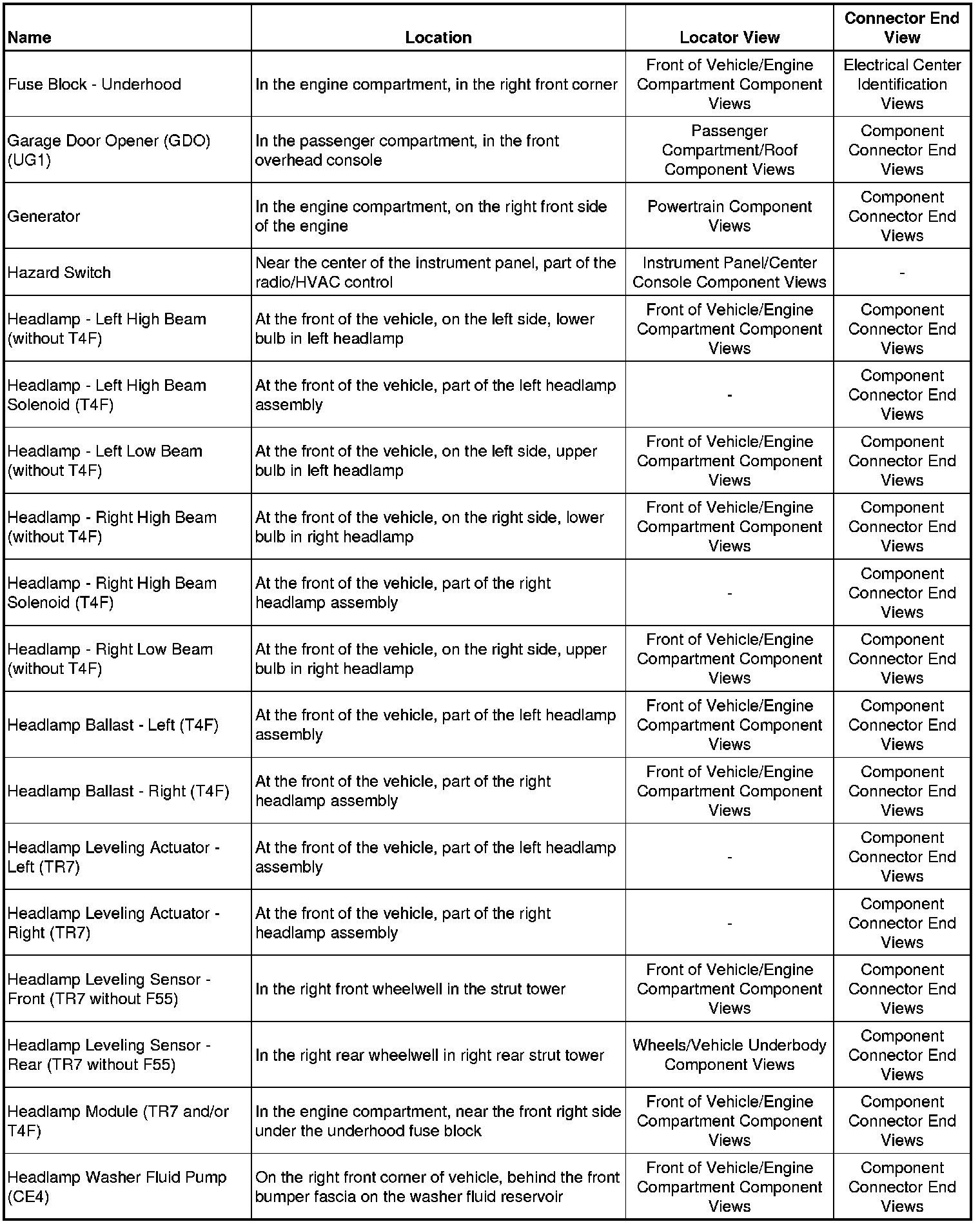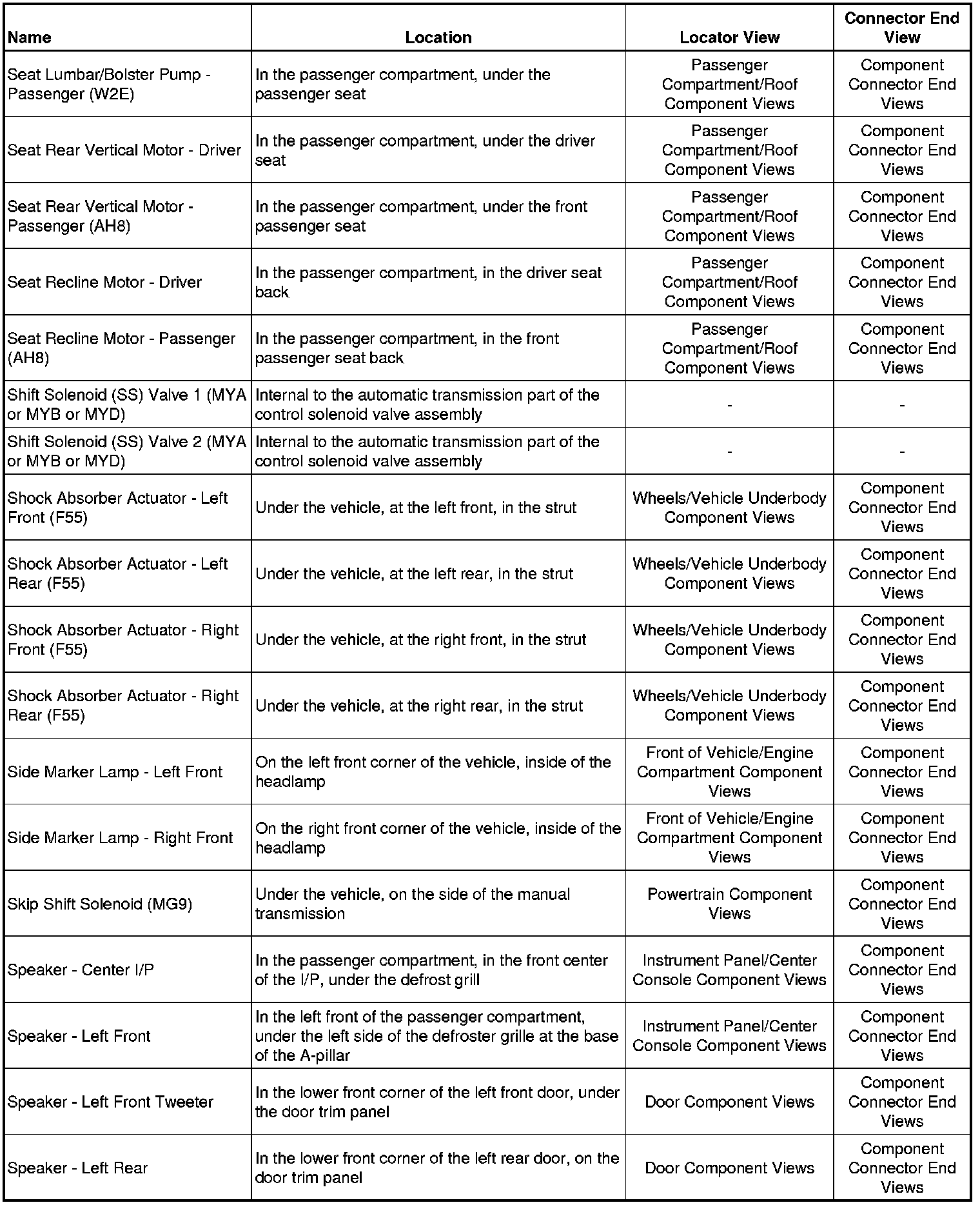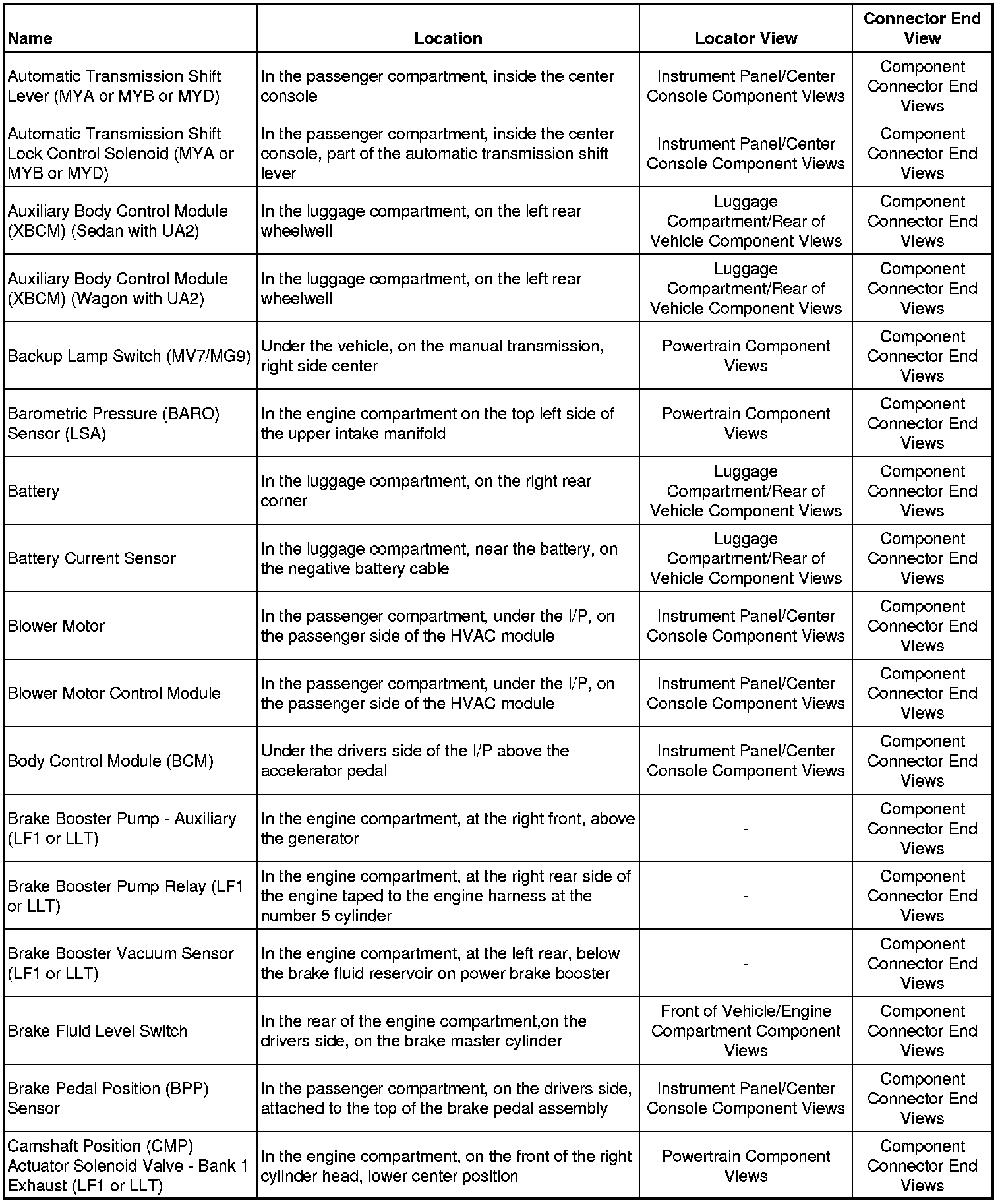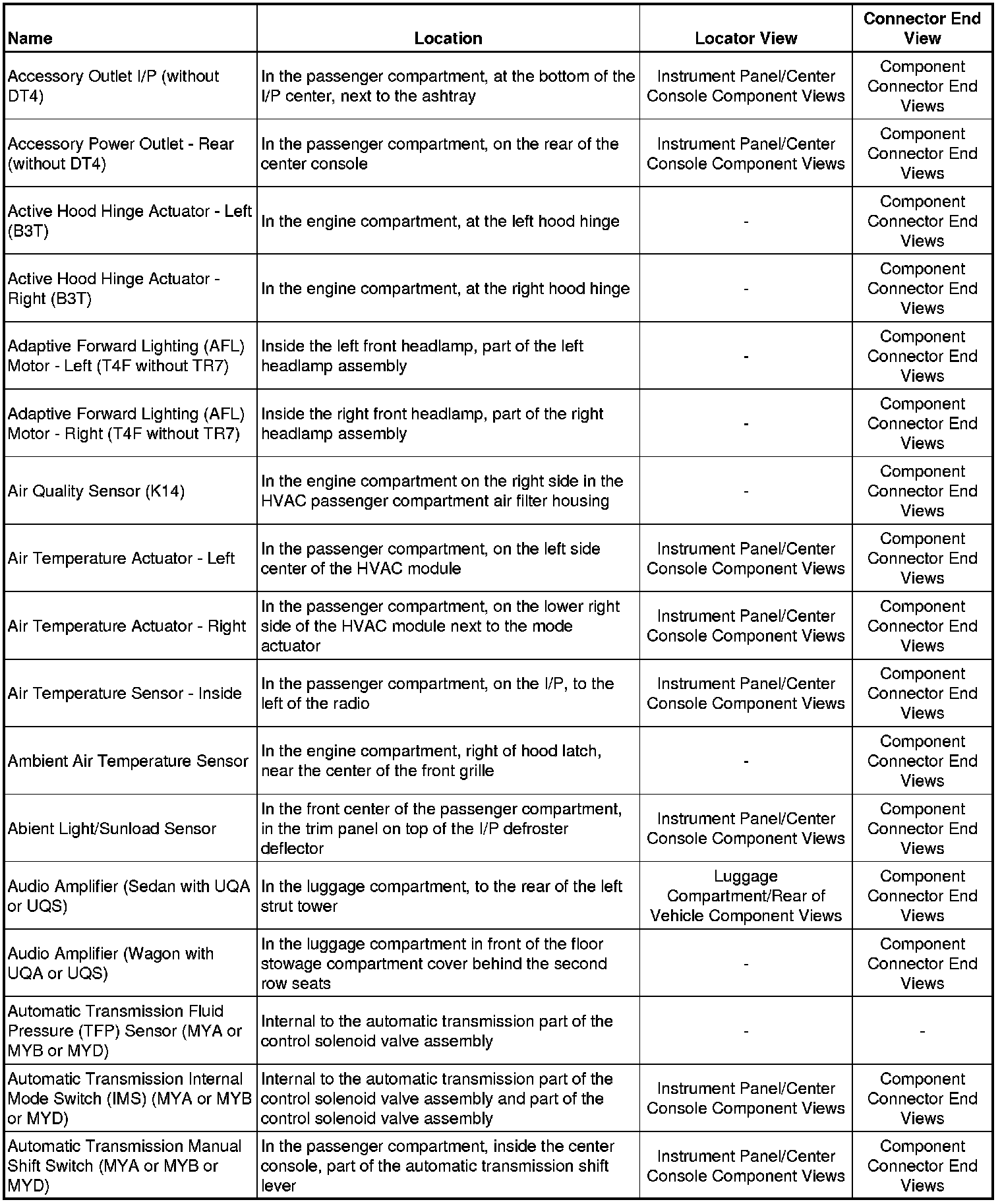 Master Electrical Component ListA/C - Ac: