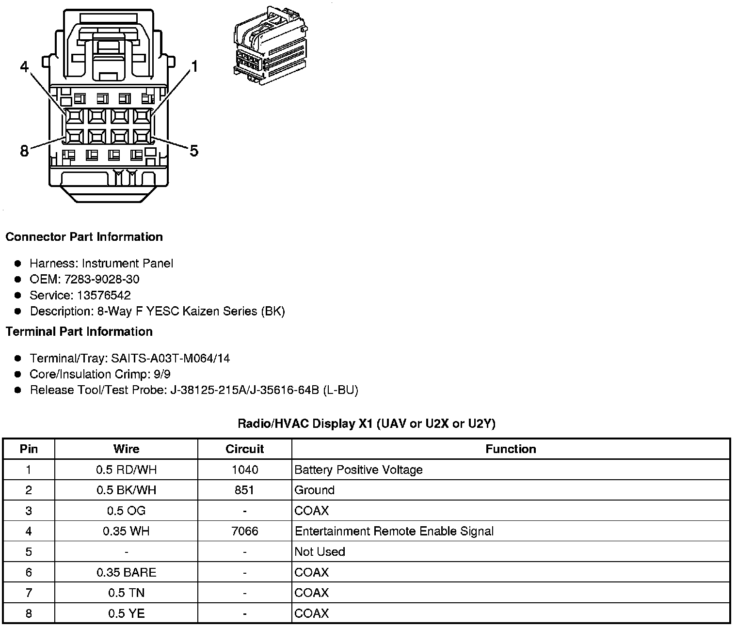 Radio/HVAC Display X1 (UAV or U2X or U2Y)