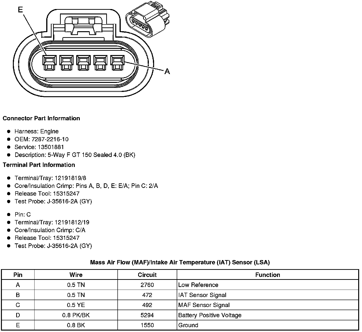 Mass Air Flow (MAF)/Intake Air Temperature (IAT) Sensor (LSA)