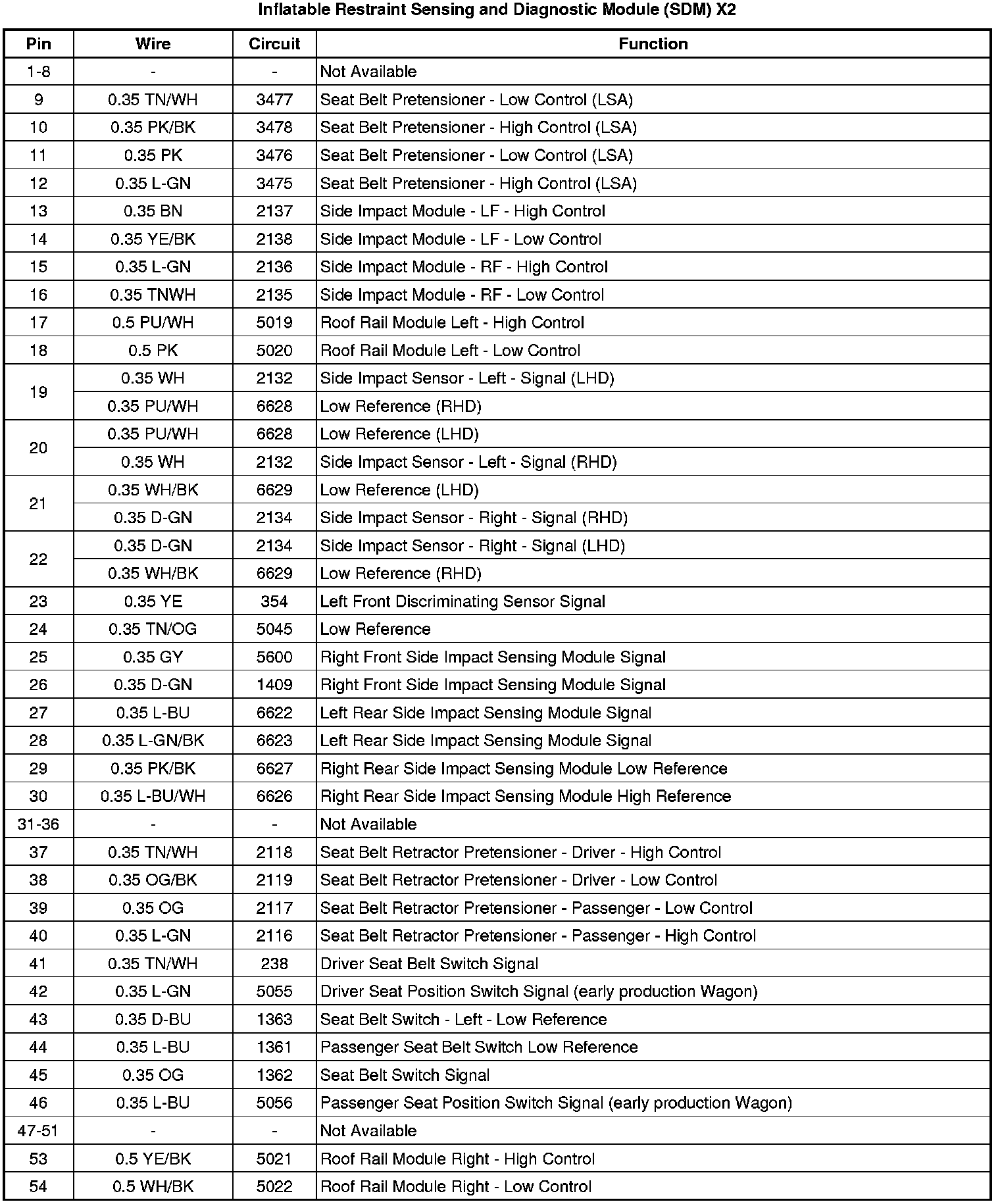 Inflatable Restraint Sensing and Diagnostic Module (SDM) X2
