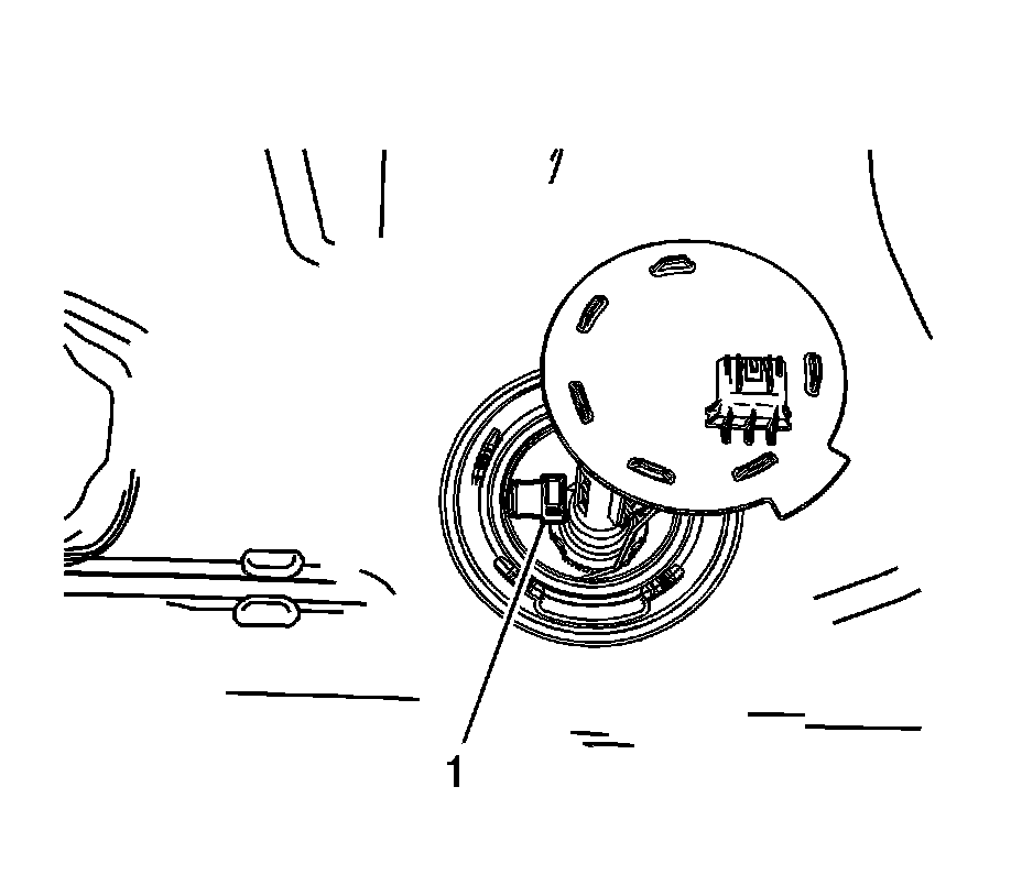 2. Release the interlock and disconnect the electrical connector (1) from the secondary fuel tank module. Position the connector and wire harness aside.