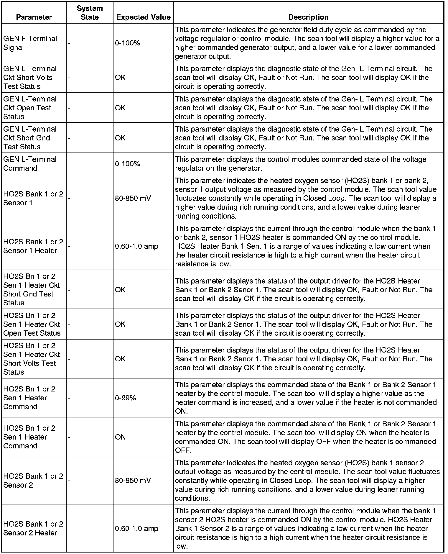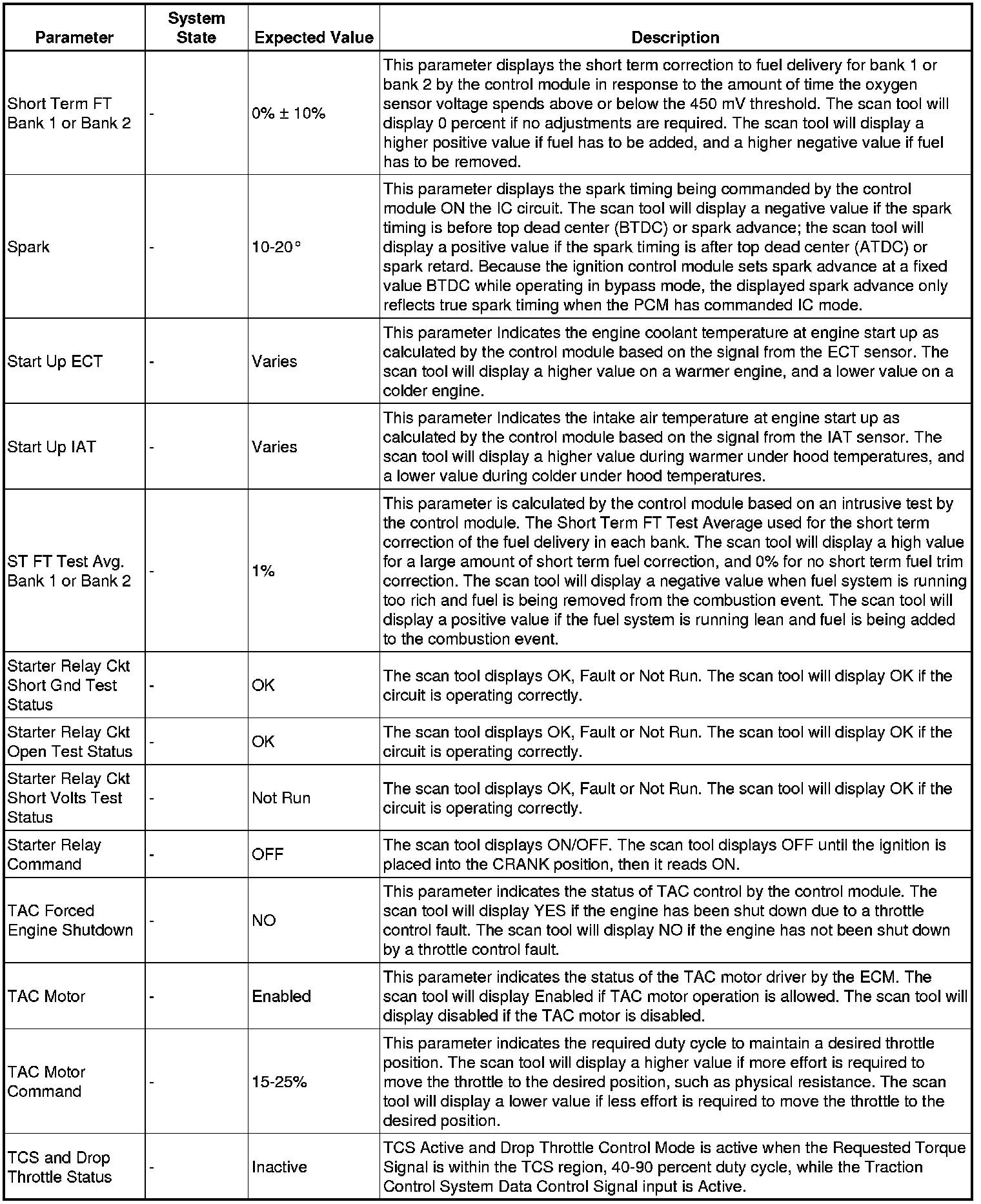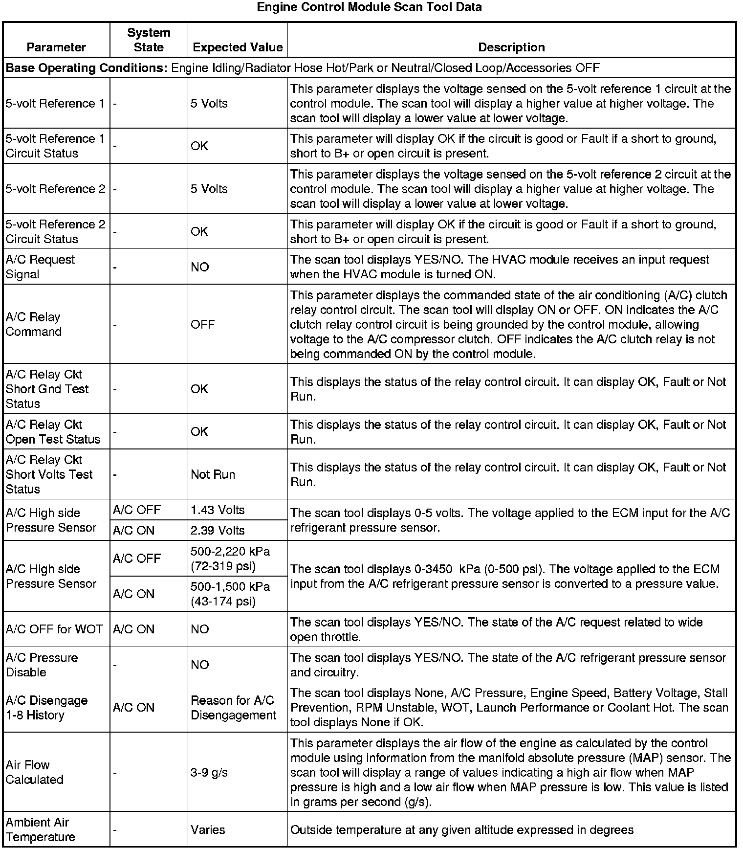 The Engine Control Module Scan Tool Data List contains all engine-related parameters that are available on the scan tool. The list is arranged in alphabetical order. A given parameter may appear in any one of the data lists, and in some cases may appear more than once, or in more than one data list in order to group certain related parameters together.