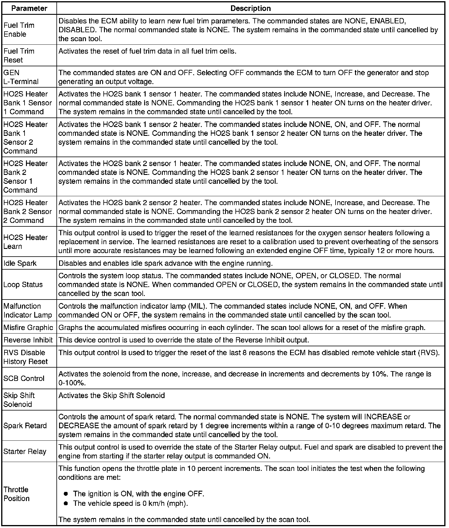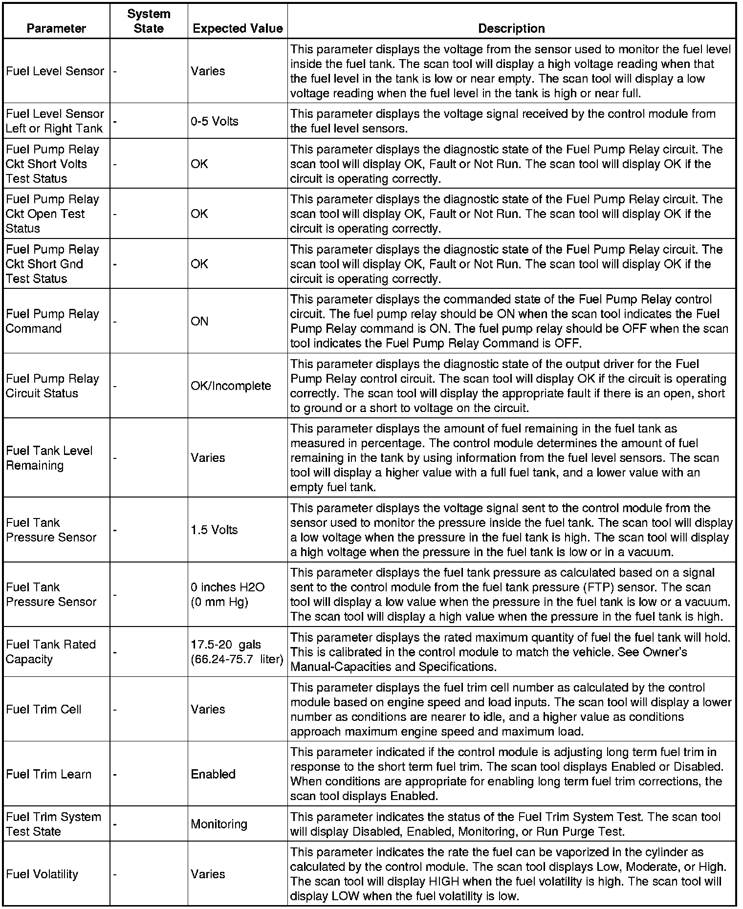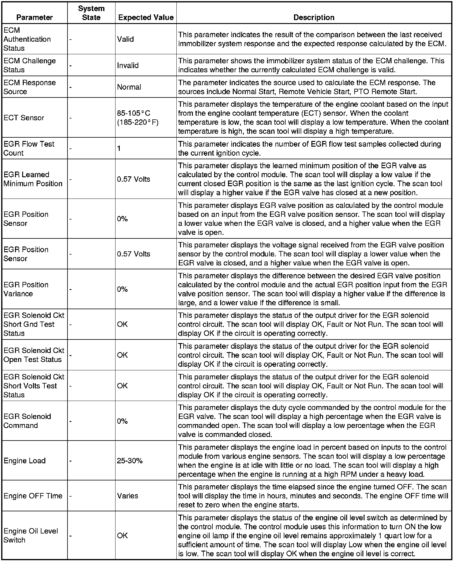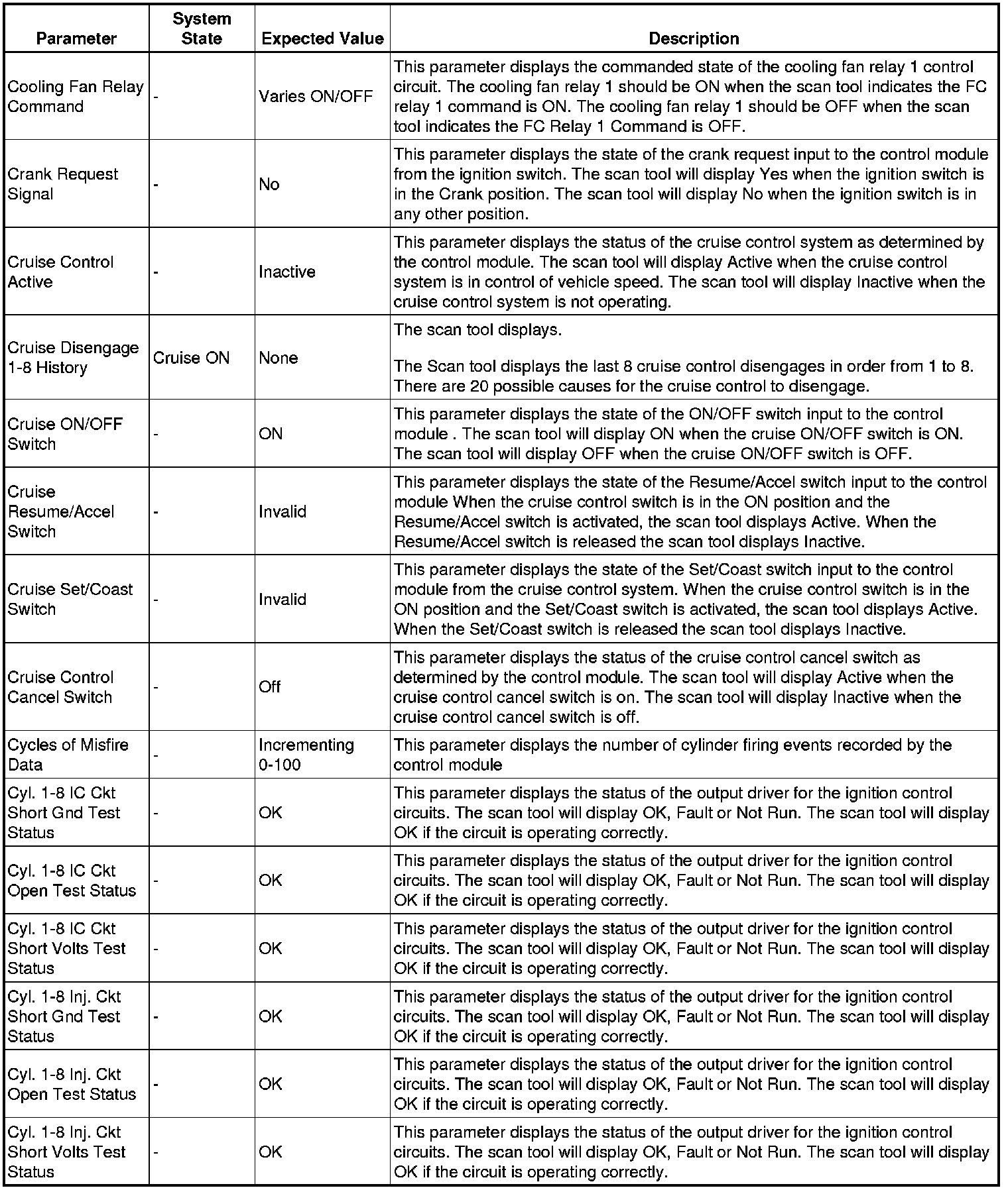 The Engine Control Module Scan Tool Data List contains all engine-related parameters that are available on the scan tool. The list is arranged in alphabetical order. A given parameter may appear in any one of the data lists, and in some cases may appear more than once, or in more than one data list in order to group certain related parameters together.