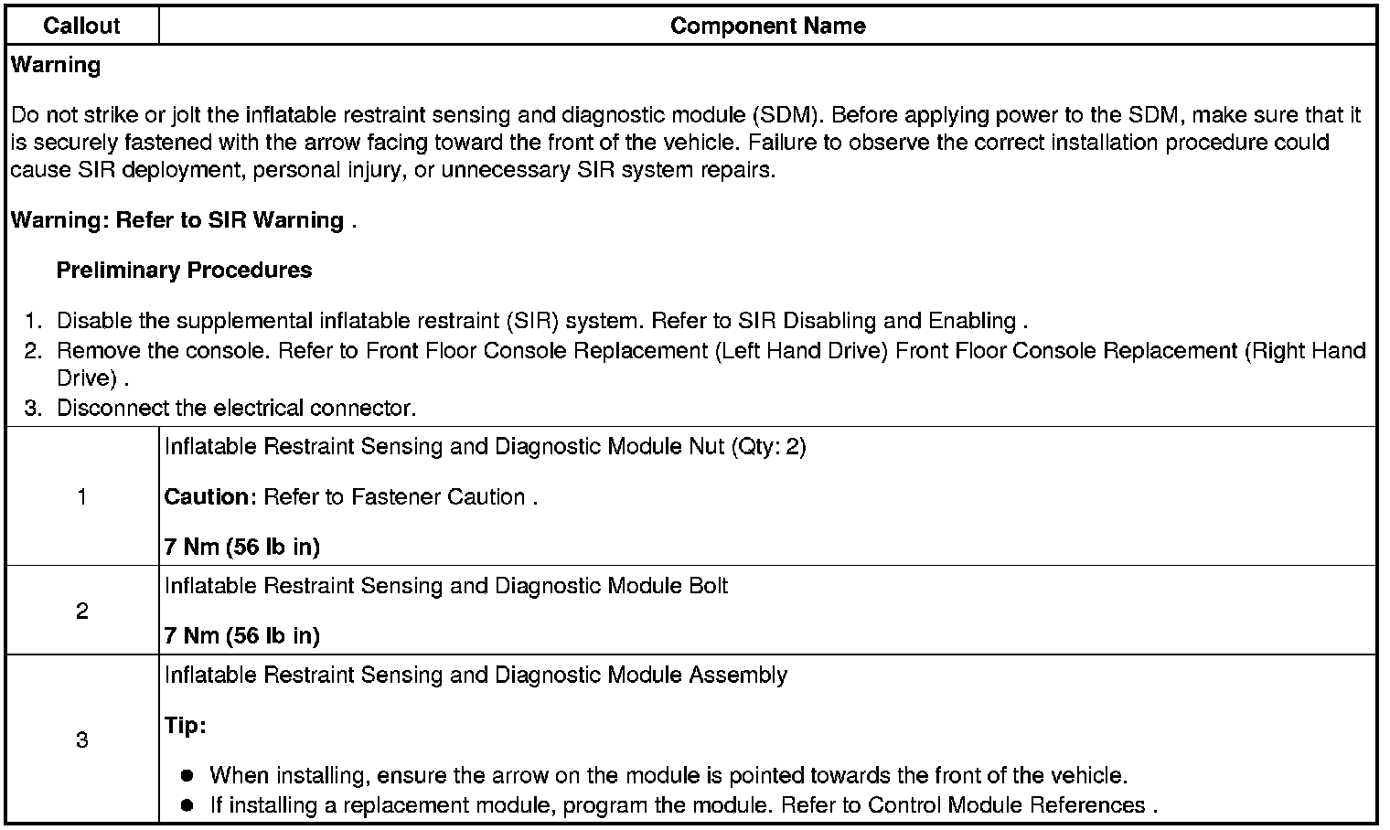 Inflatable Restraint Sensing and Diagnostic Module Replacement