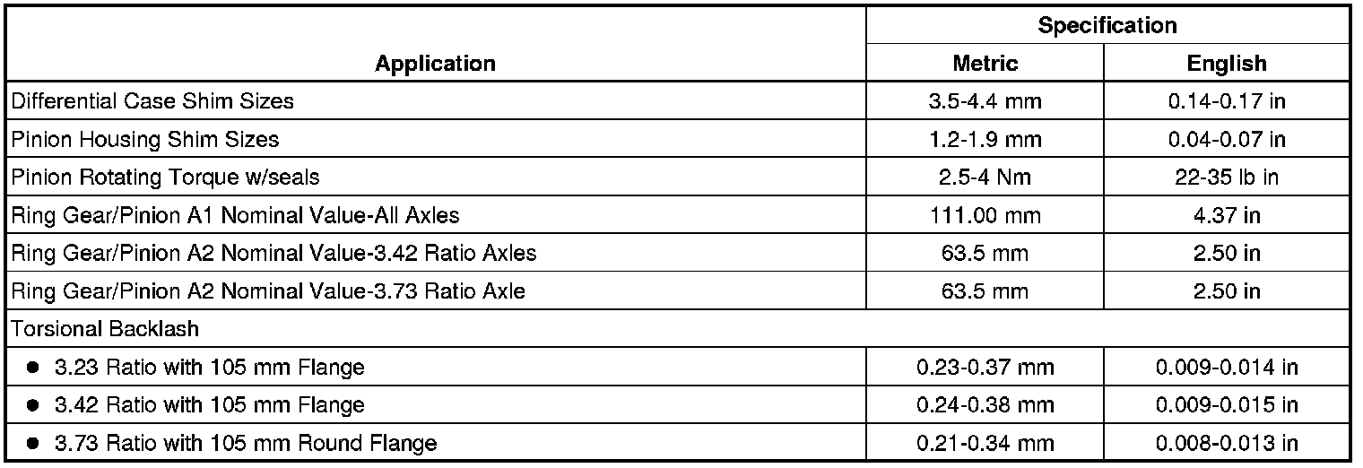 Rear Axle Specifications