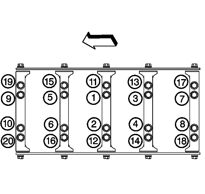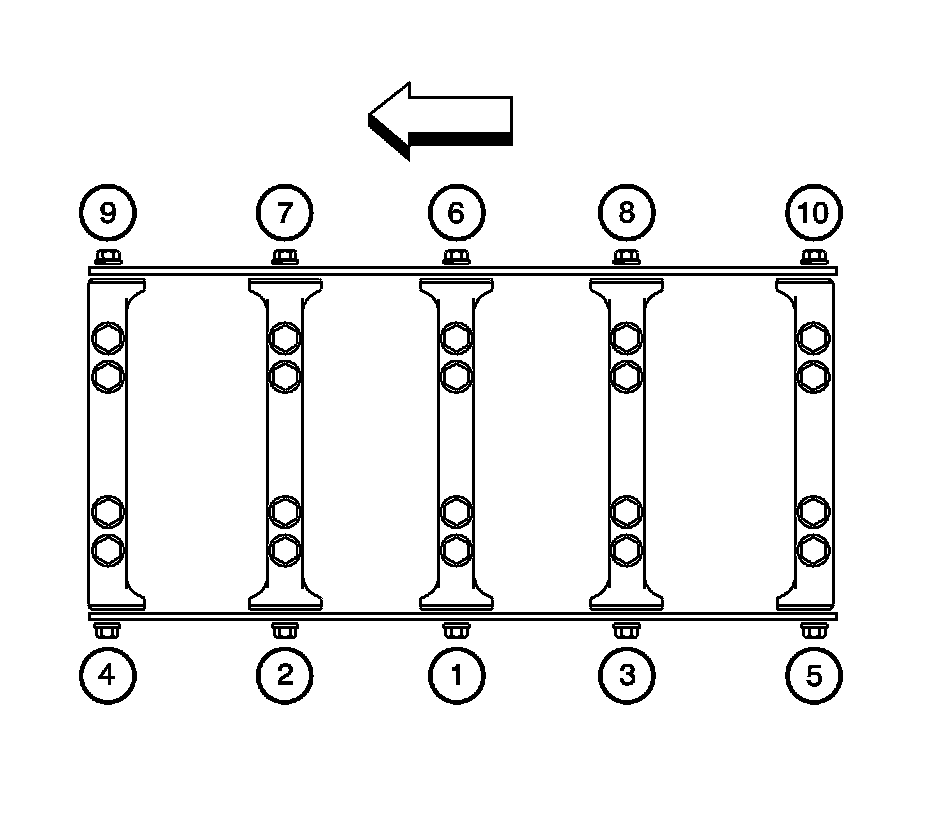 Bolts (1-10) first pass 20 Nm (15 lb ft)