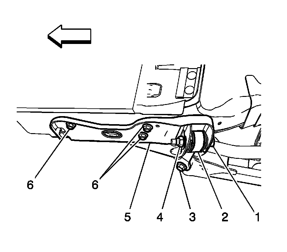 4. Install the rear suspension bracket mounting bolts (6) and tighten to 58 Nm (43 lb ft).