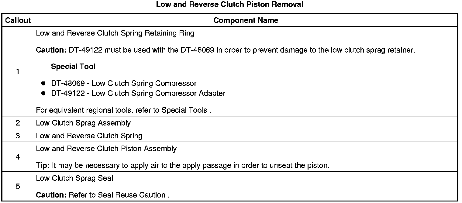 Low and Reverse Clutch Piston Removal