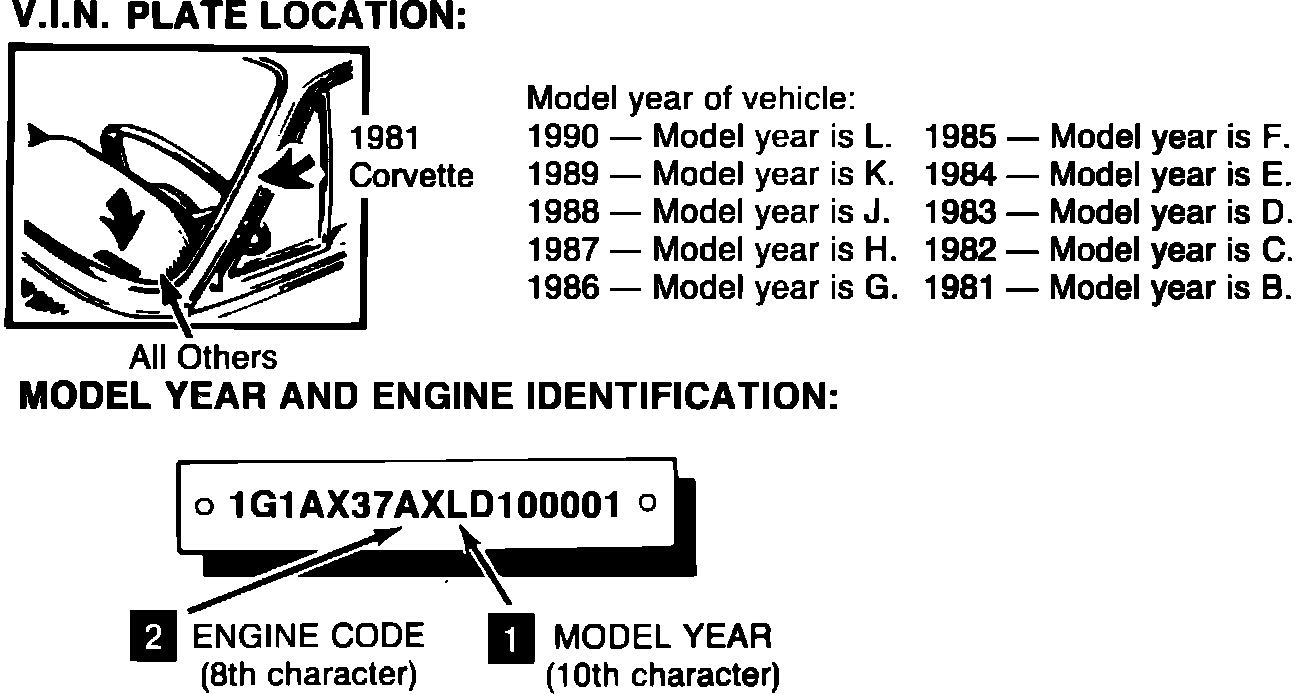 [1] MODEL YEAR IDENTIFICATION: Refer to illustration of Vehicle Identification Number (V.I.N.). This year is indicated by a code letter.