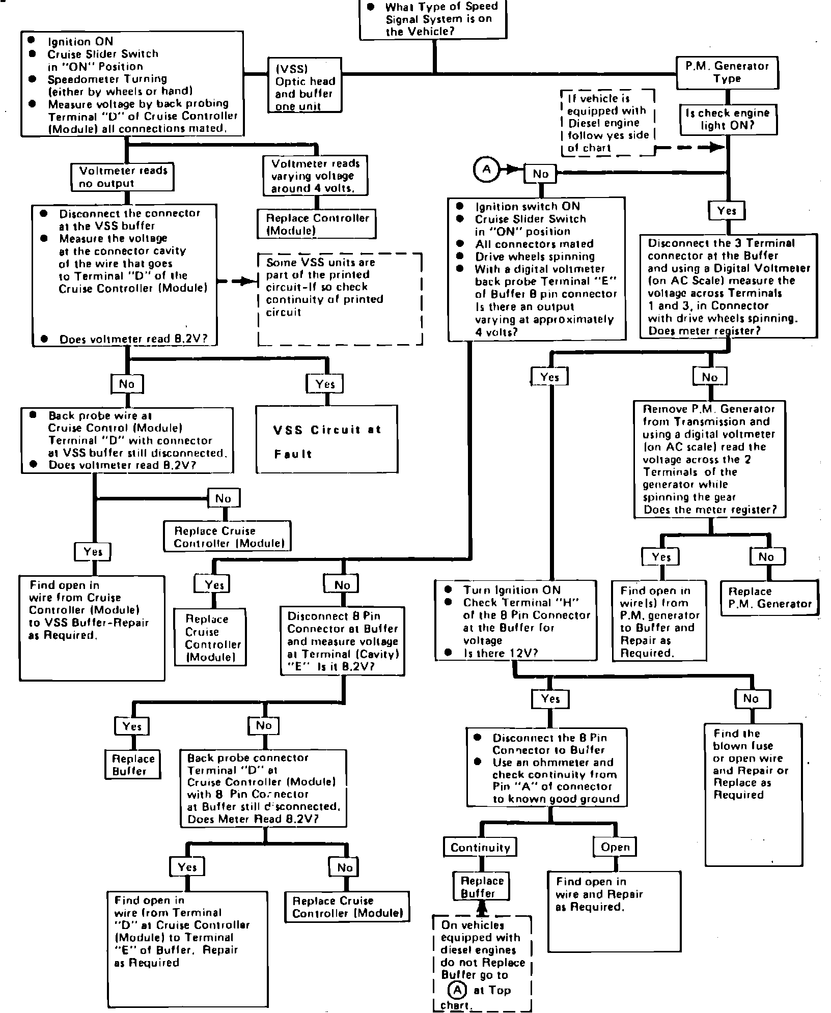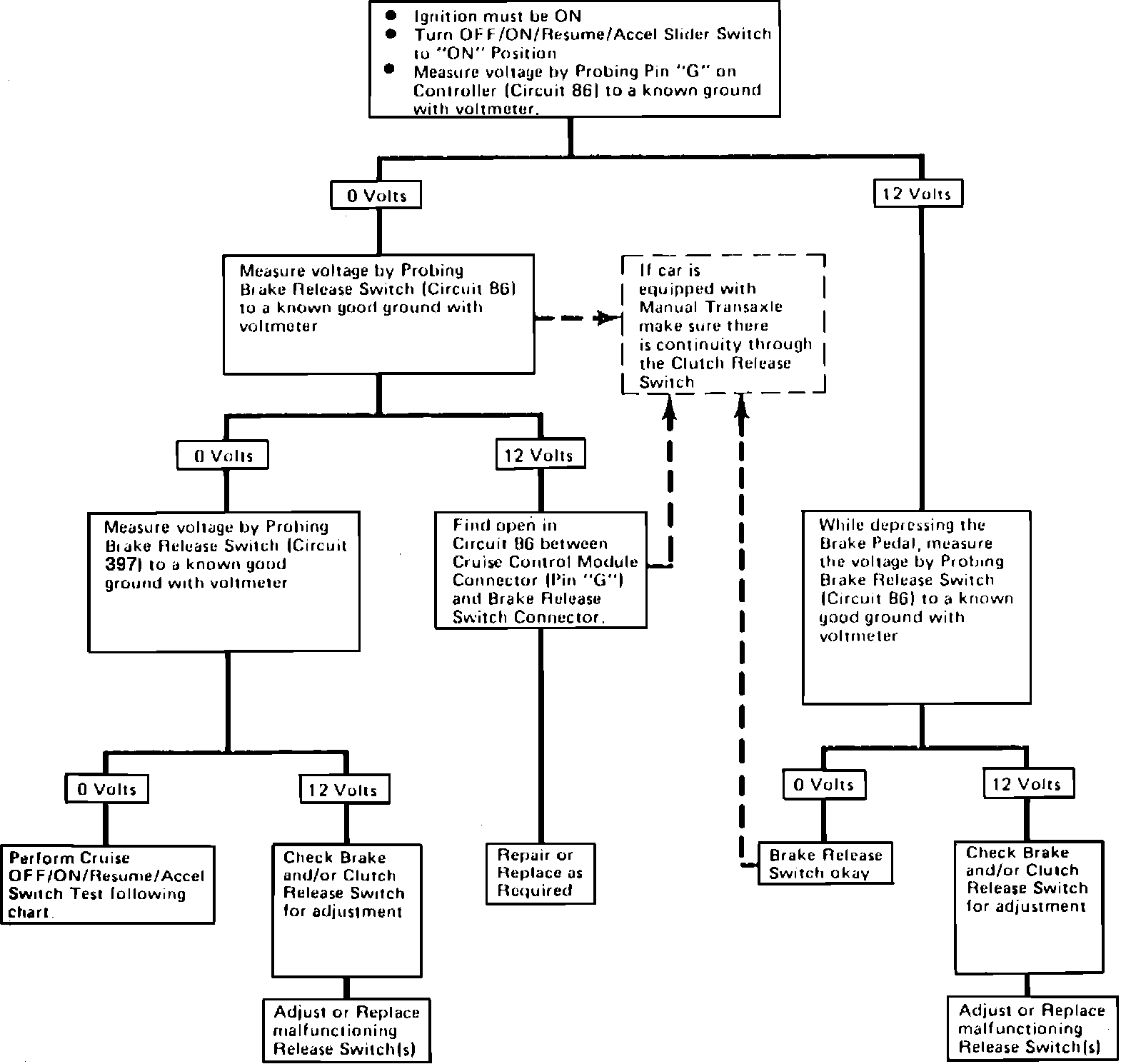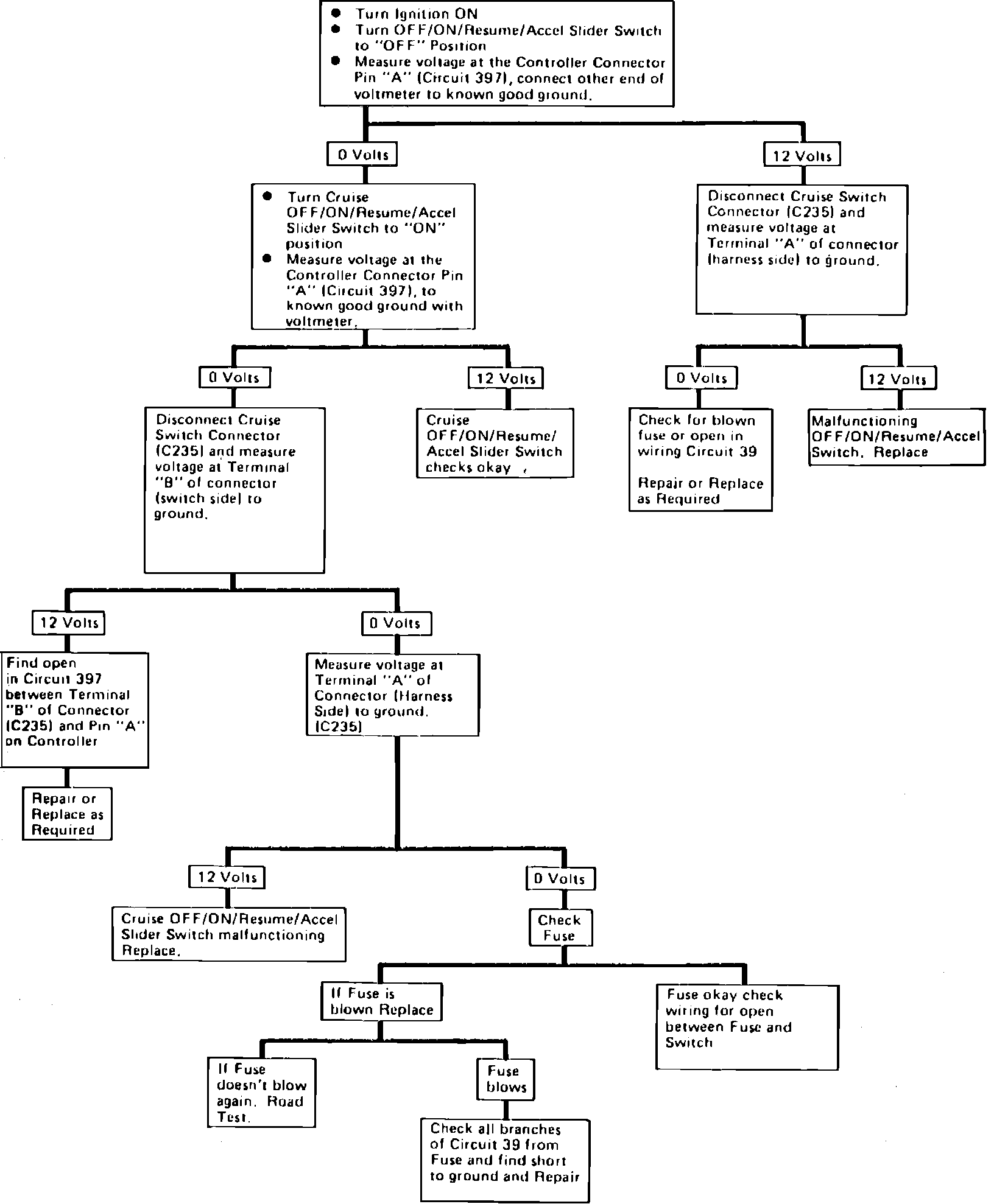 Fig. 6 On/Off/Resume/Accel switch diagnostic chart: