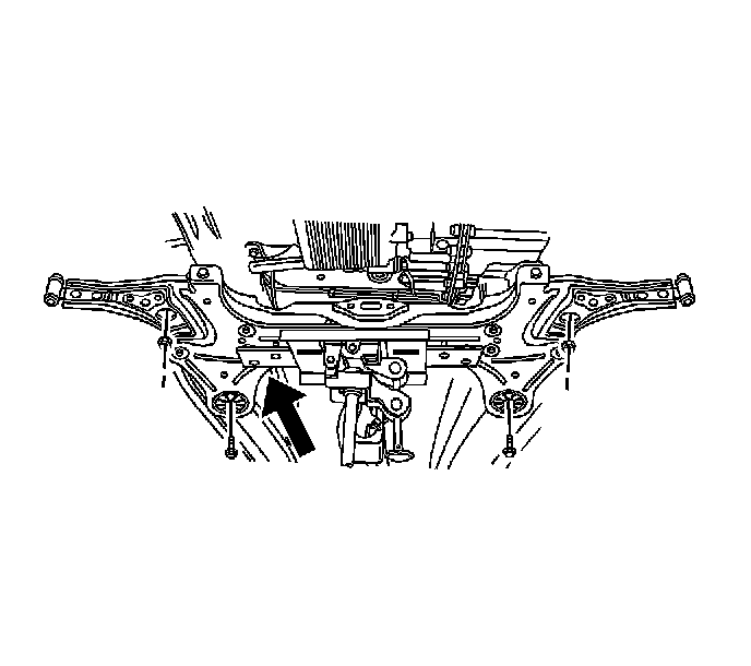 Caution: Failure to support crossmember can cause crossmember to drop to the ground when crossmember mounting bolts are removed.