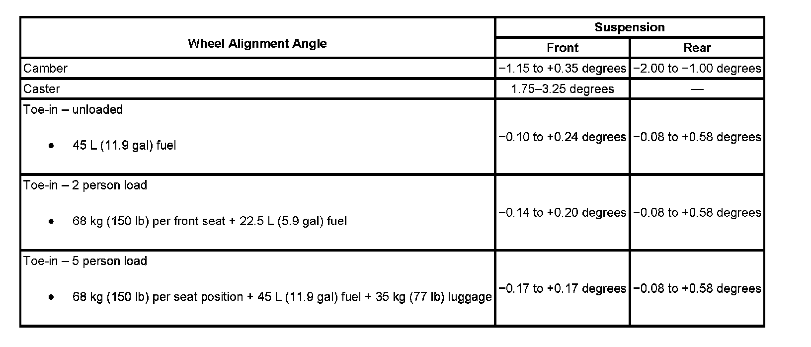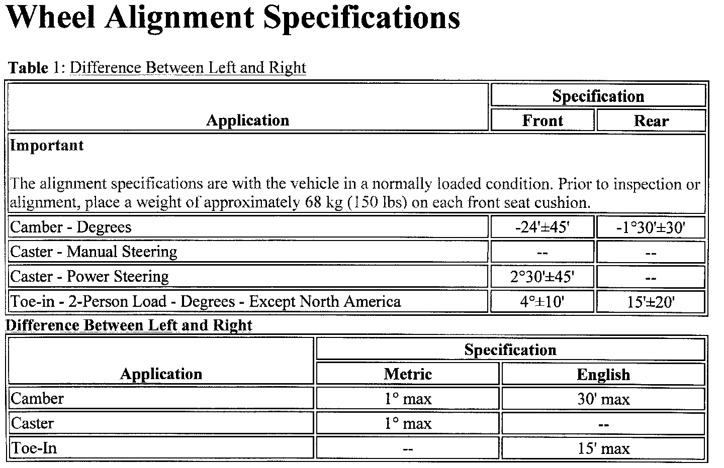 Wheel Alignment Specifications