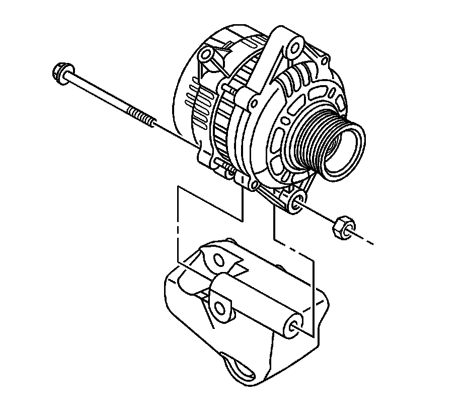 3. Install the generator and the lower support bracket assembly to the engine block with the bolts.
