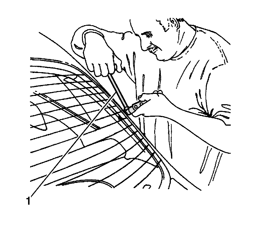 4. Using the J 24402-A (1), cut the adhesive around the rear window.