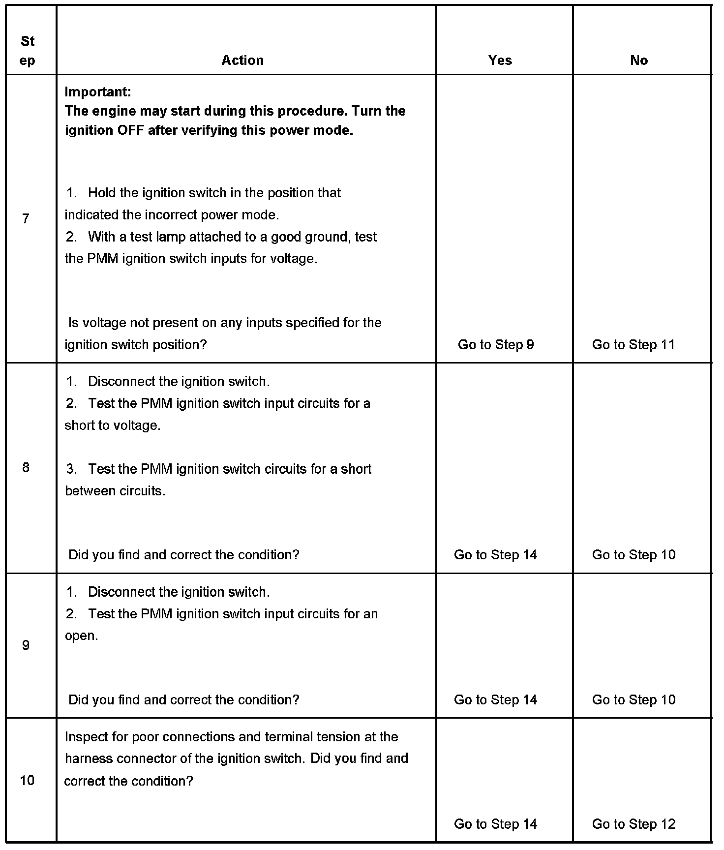 8. If any ignition switch parameters that should be inactive in the present ignition switch position are active, 2 ignition switch signal circuits may be shorted together.