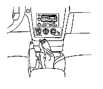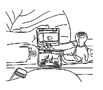 7. Remove the front floor console by lifting up and back. Guide the shift boot over the optional shift knob and over the park brake handle.