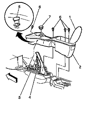 6. Remove the bolts (6) from the front floor console.