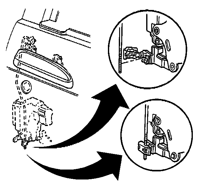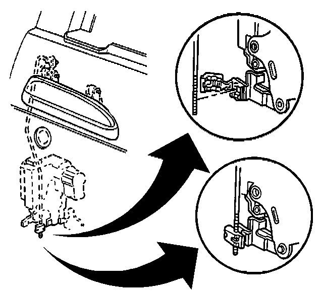 5. Position the outside door handle rod in the clip in order to eliminate any free play in the outside door handle.