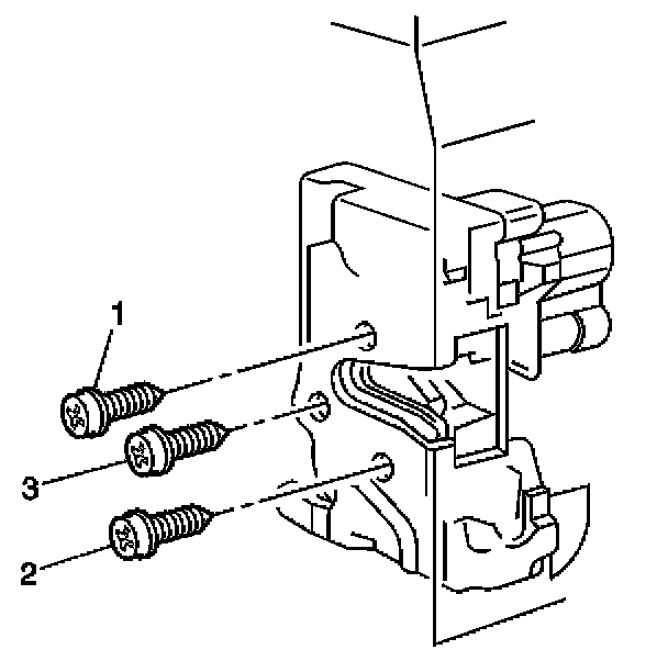 7. Remove the screws (1, 2, 3) securing the lock to the door.