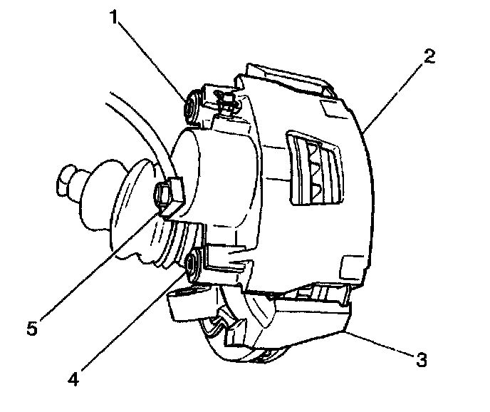 13. Remove the disc brake caliper bolts (1) from the caliper assembly (3).