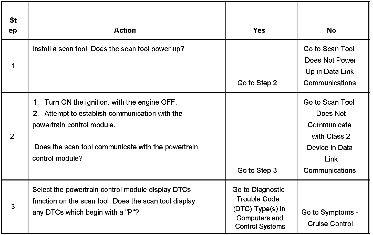 2. Lack of communication may be due to a partial malfunction of the class 2 serial data circuit or due to a total malfunction of the class 2 serial data circuit. The specified procedure will determine the particular condition.