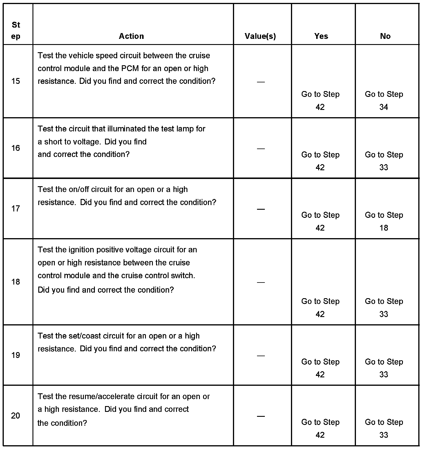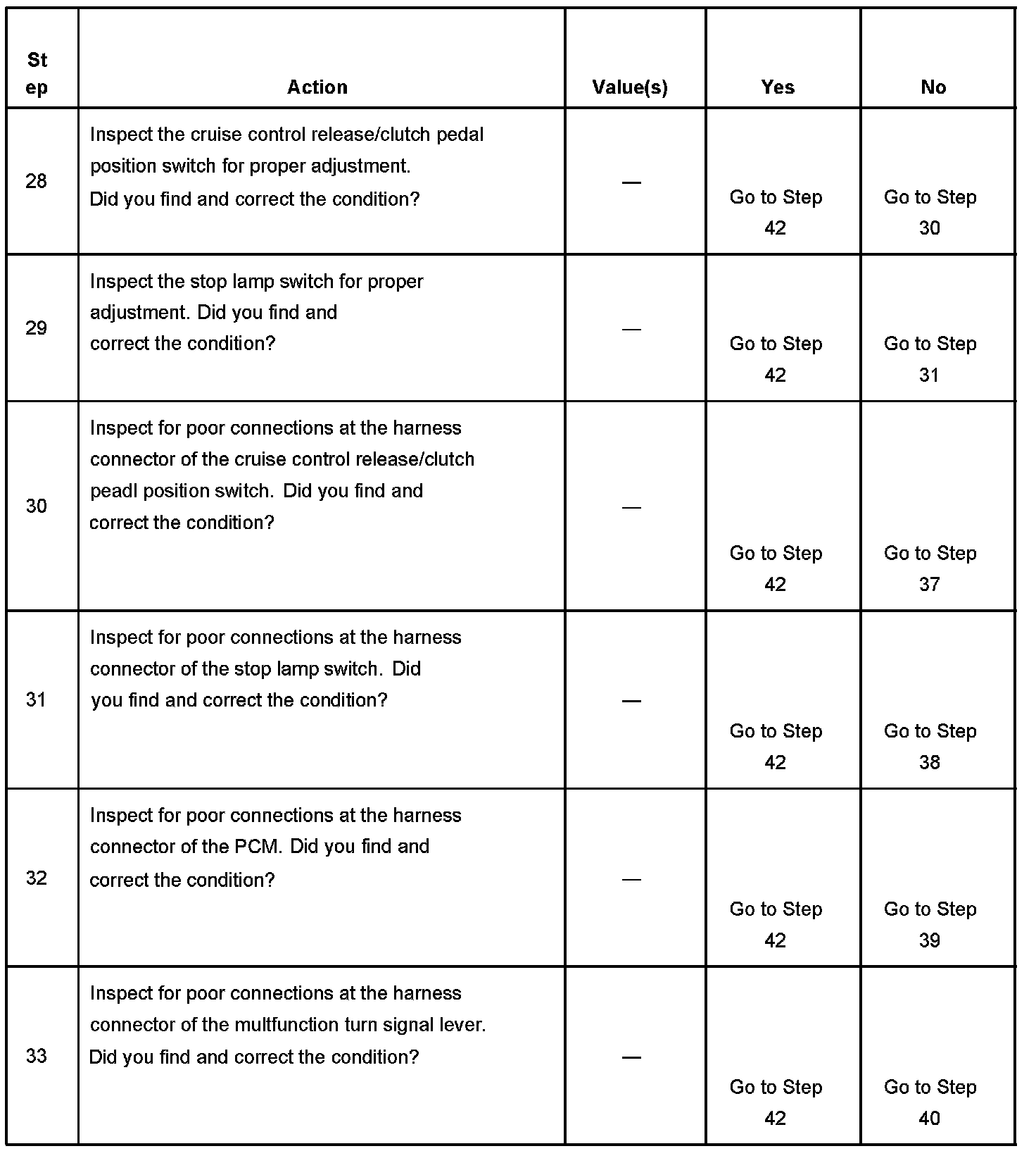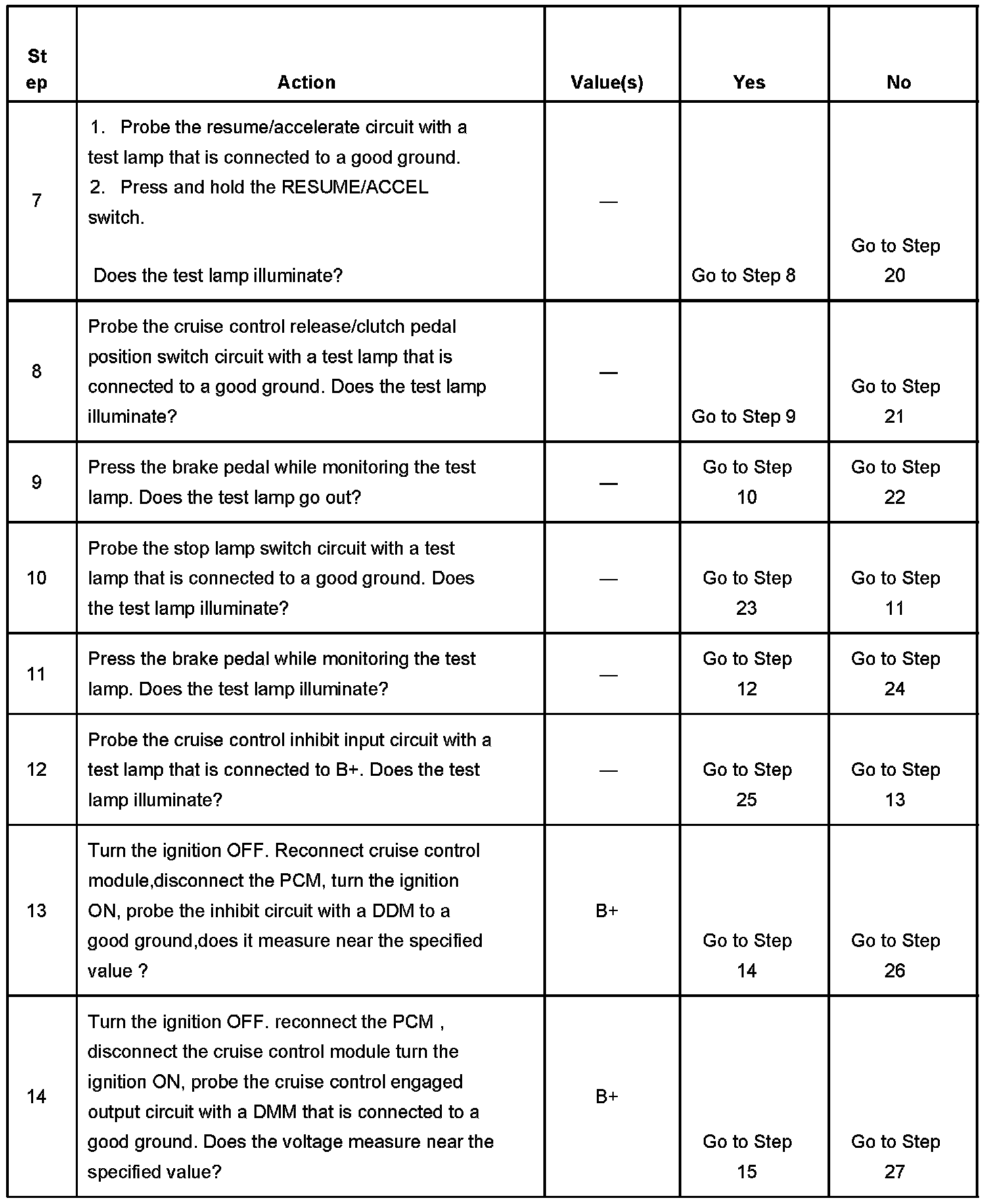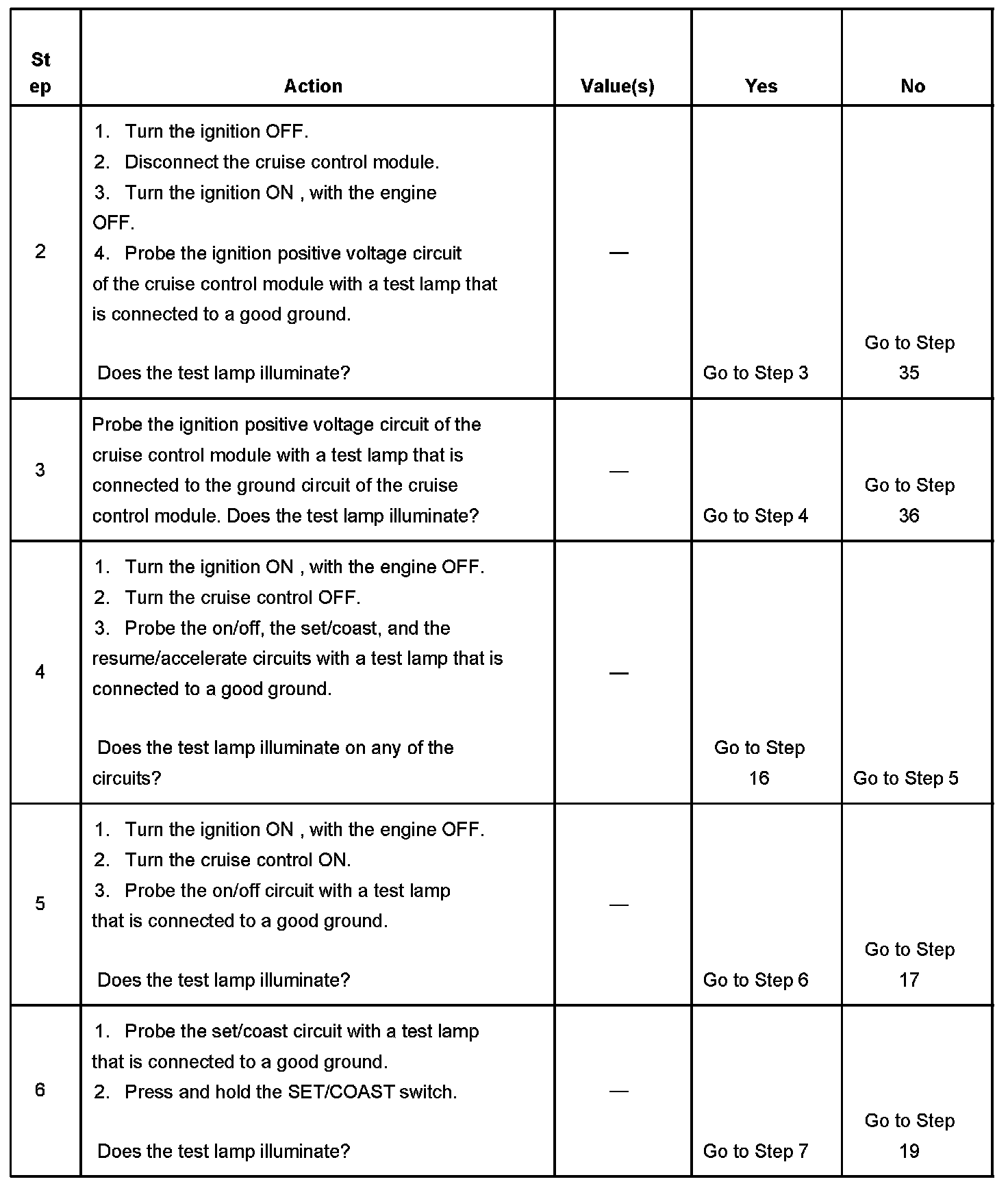CRUISE CONTROL INOPERATIVE/MALFUNCTIONINGDIAGNOSTIC AIDS